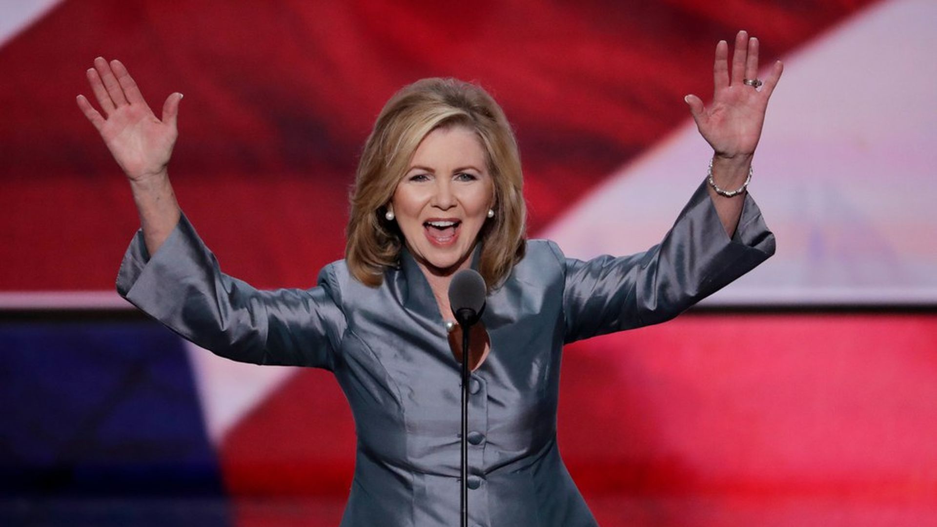 Rep. Marsha Blackburn, R-Tenn., waves after speaking during the final day of the Republican National Convention. Photo: J. Scott Applewhite / AP