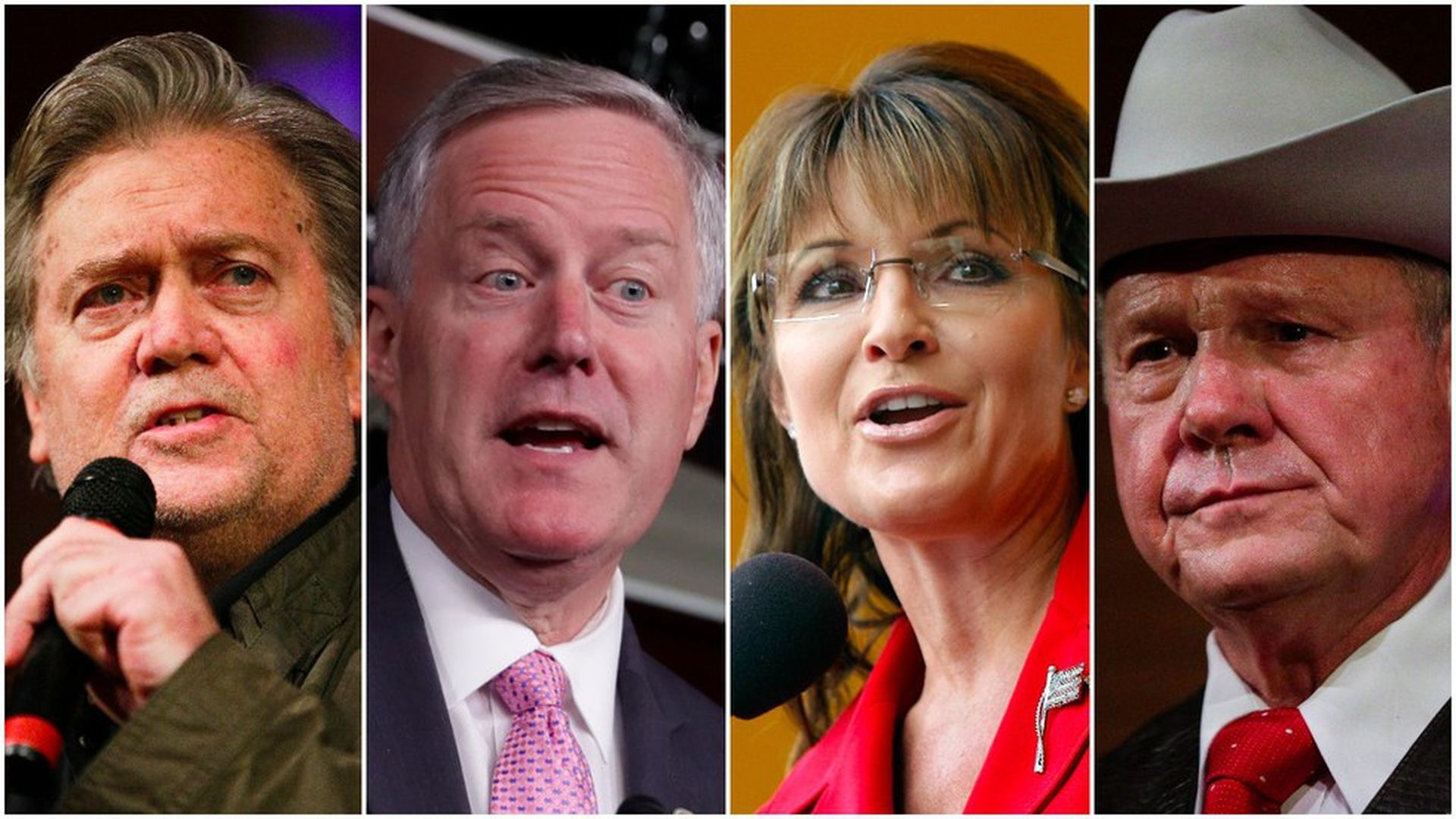 From left: Steve Bannon, Mark Meadows. Sarah Palin, Roy Moore. Photos: AP