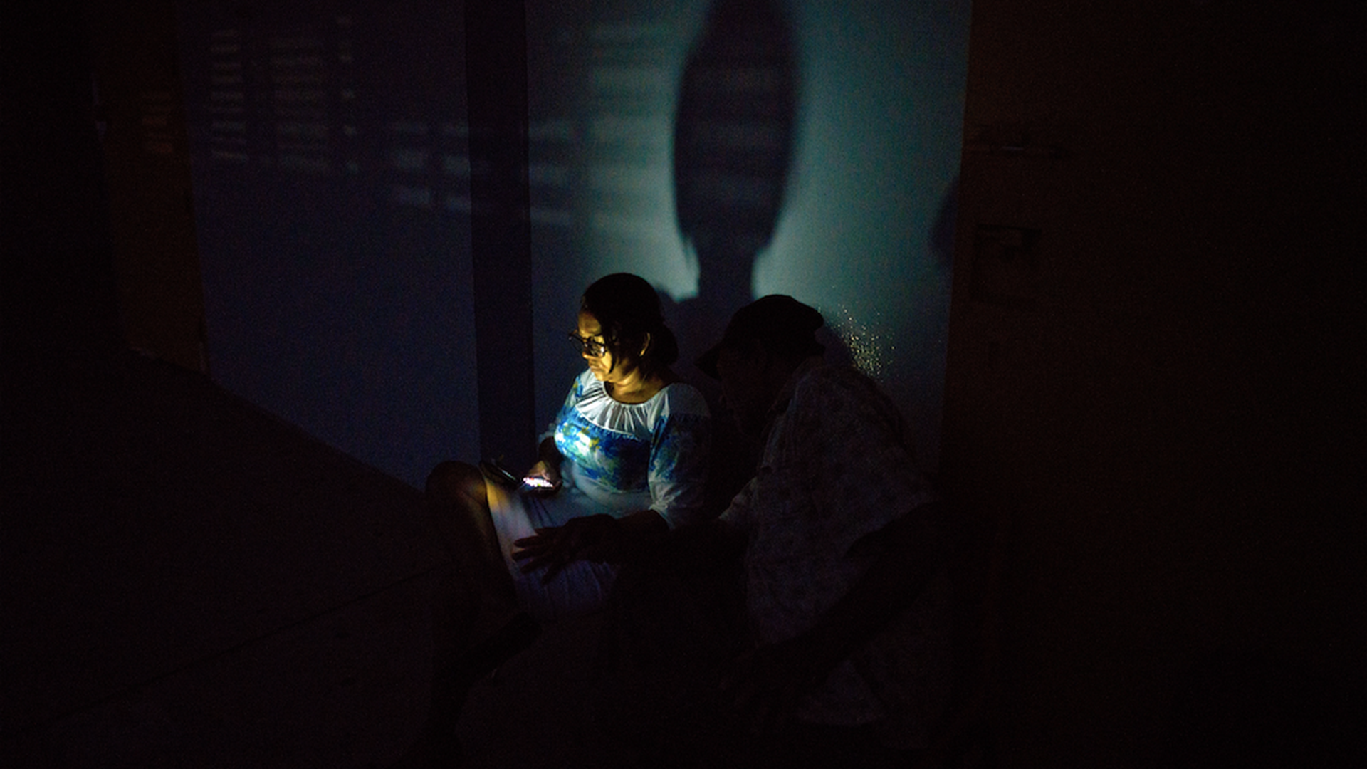A woman, left homeless after the hurricane, uses her cell phone in a shelter that doesn't have electricity — like much of the island. Photo: Ramon Espinosa / AP