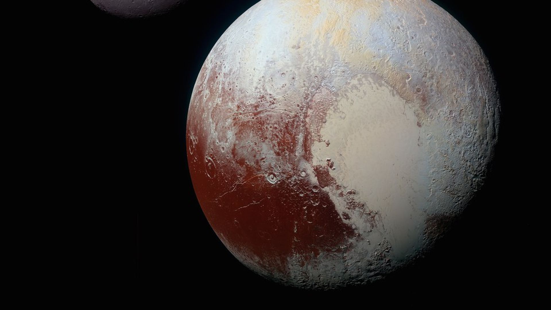 Pluto (foreground) and its moon, Charon. Image: NASA/JHUAPL/SwRI