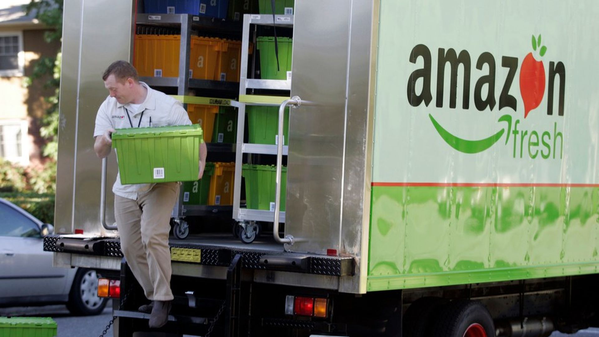 An AmazonFresh worker delivers groceries. Photo: Joe Nicholson / AP