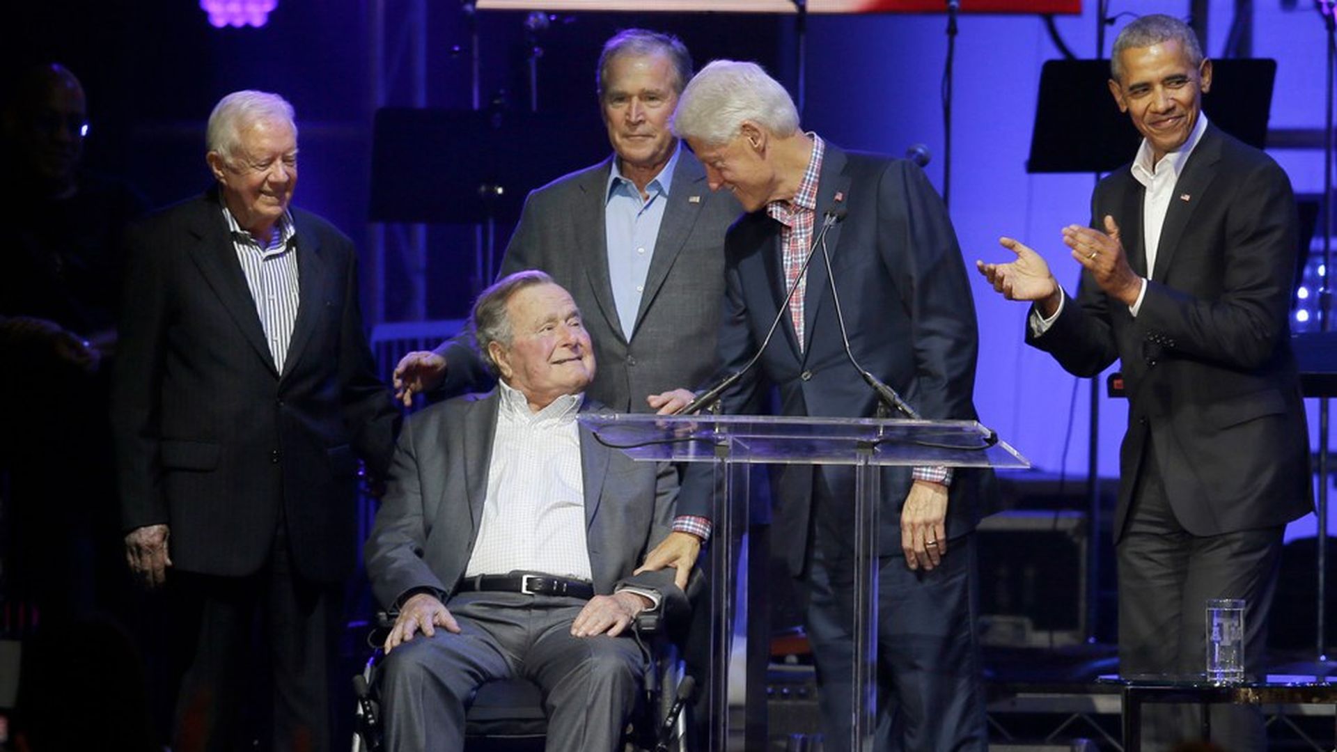 Bush with the four other living presidents at an concert in Texas to raise funds for hurricane relief. Photo: LM Otero / AP