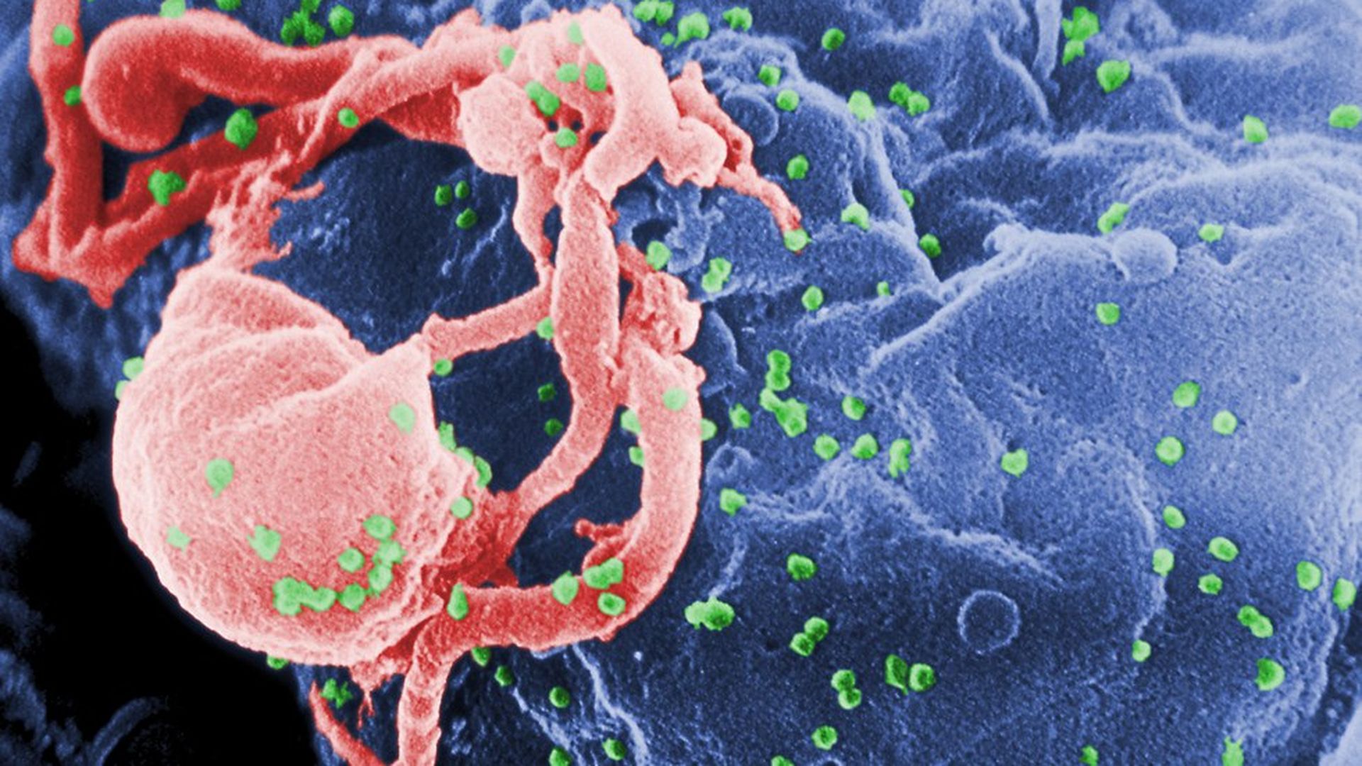 Green HIV virus bumps on an immune cell