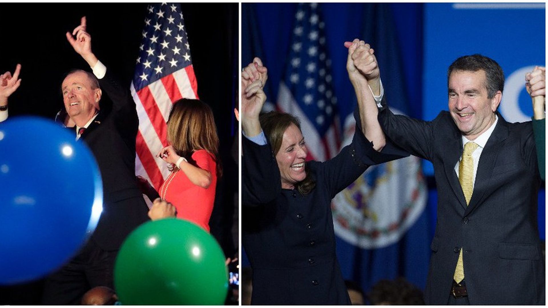 New Jersey Democrat Phil Murphy (L) and Virginia Democrat Ralph Northam (R), who each won gubernatorial races last night. Photos: Julio Cortez, Cliff Owen / AP