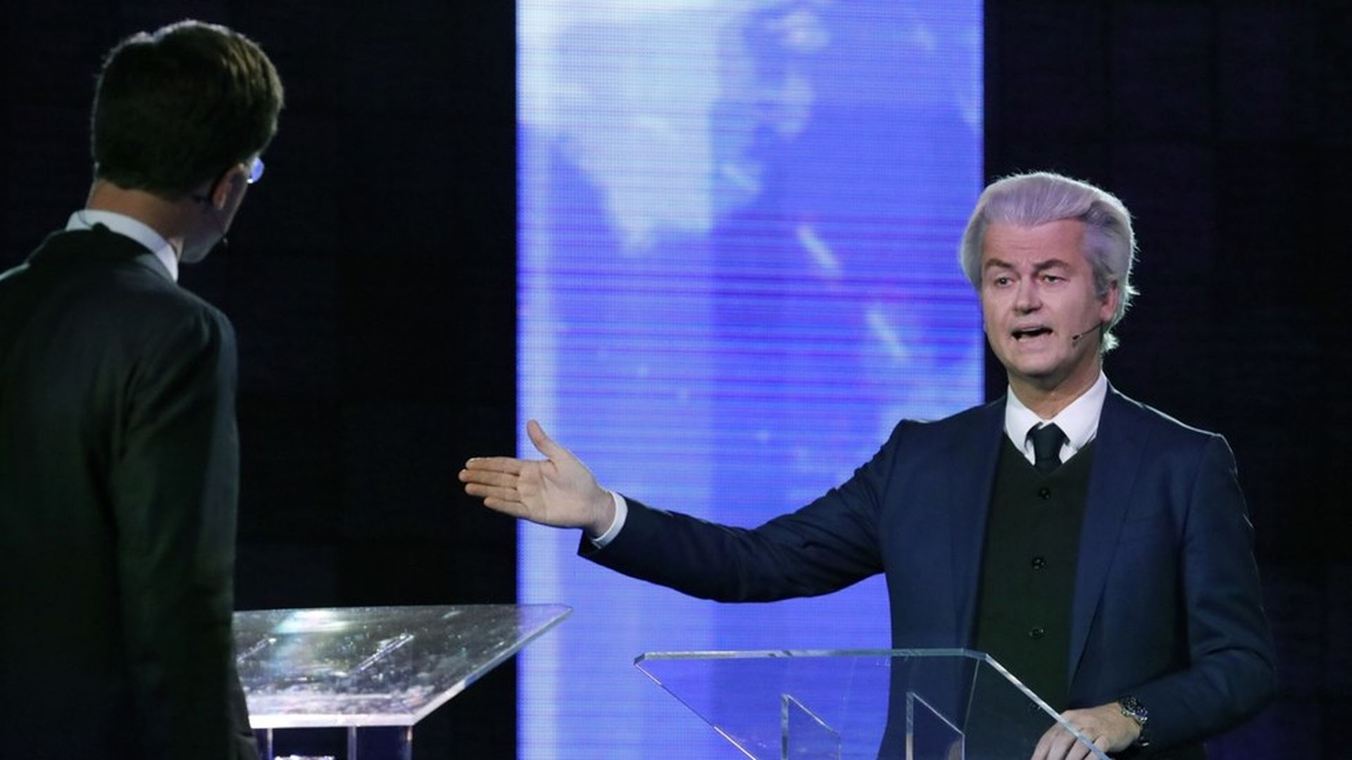 The first exit poll from the Dutch general election has been released. It shows current PM Mark Rutte's center-right People's Party for Freedom and Democracy on top, and Geert Wilders' far-right Party for Freedom in a three-way tie for second place. That means Wilders won't be in government as Rutte has already stated there is no chance of a coalition with Wilders.