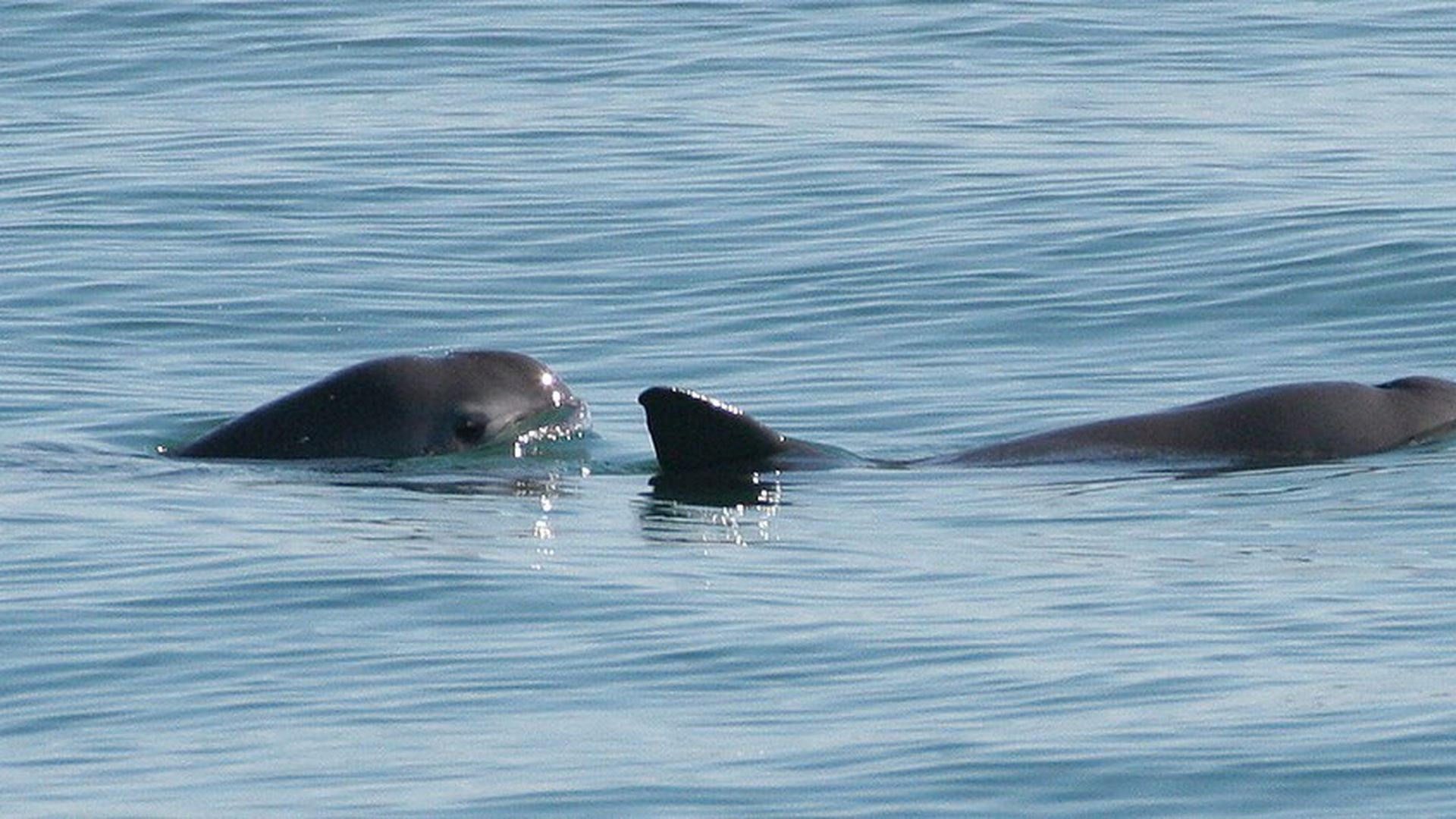 Two endangered vaquita swim in the gulf of Mexico. Photo: Paula Olson, NOAA Contractor; taken under permit: Oficio No. DR/488/08