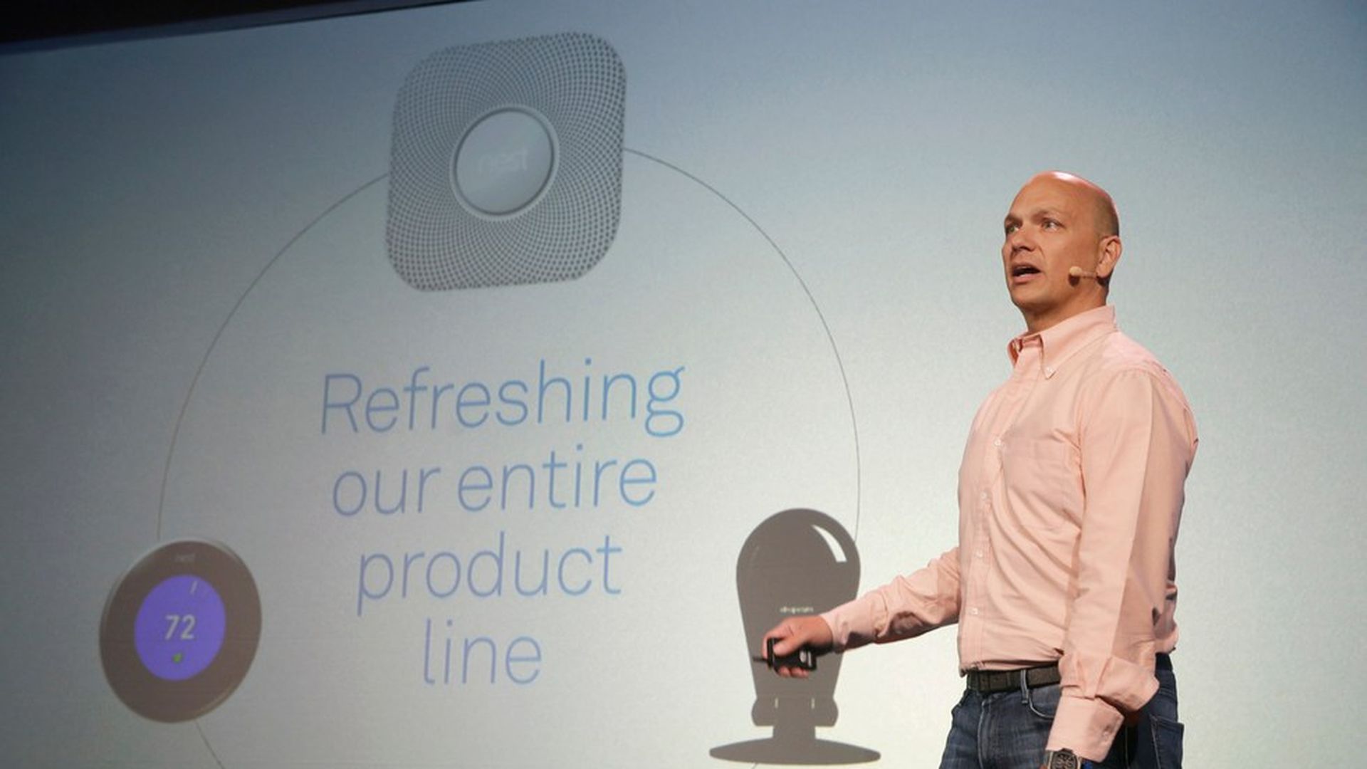 Tony Fadell gives a presentation about Nest's product updates in 2015. Photo: Eric Risberg / AP