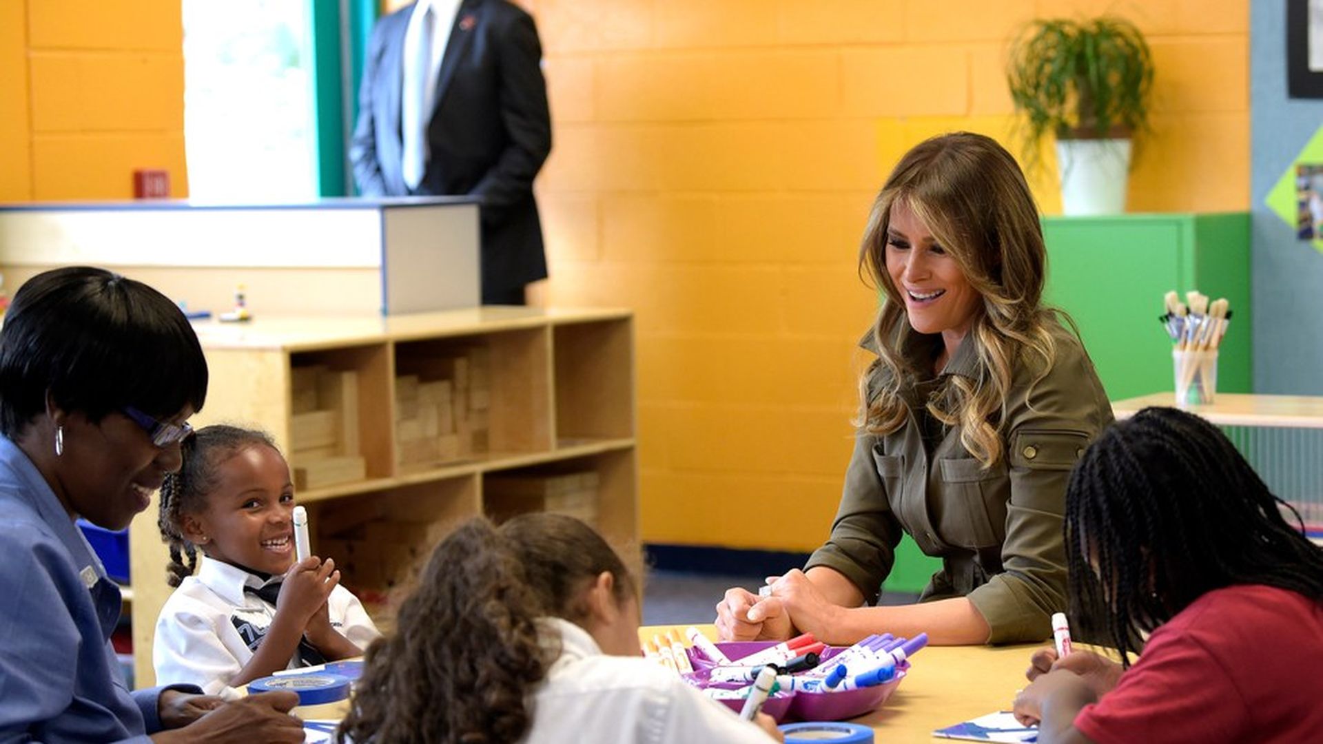First lady Melania Trump visits with children at a youth center at Andrews Air Force Base. Photo: Susan Walsh/AP