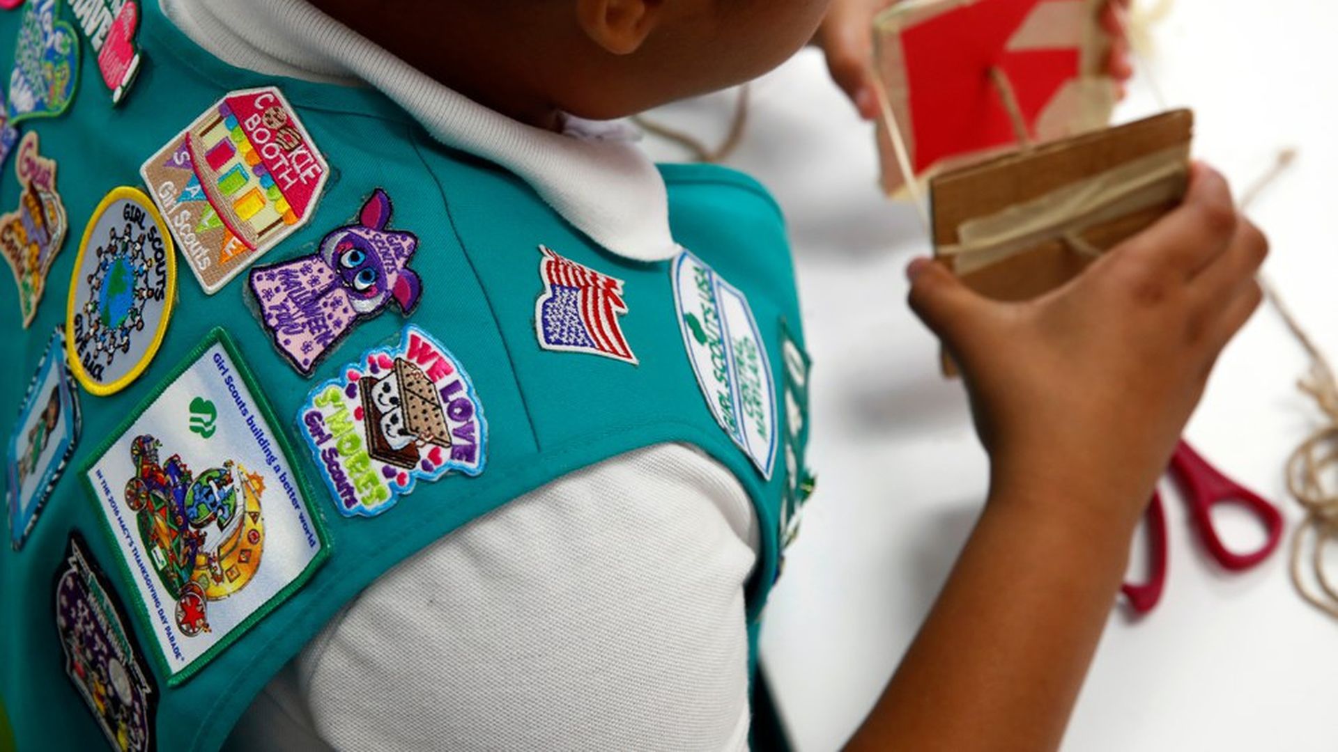 Badges on the vest of a Girl Scout member. Photo: Patrick Semansky / AP