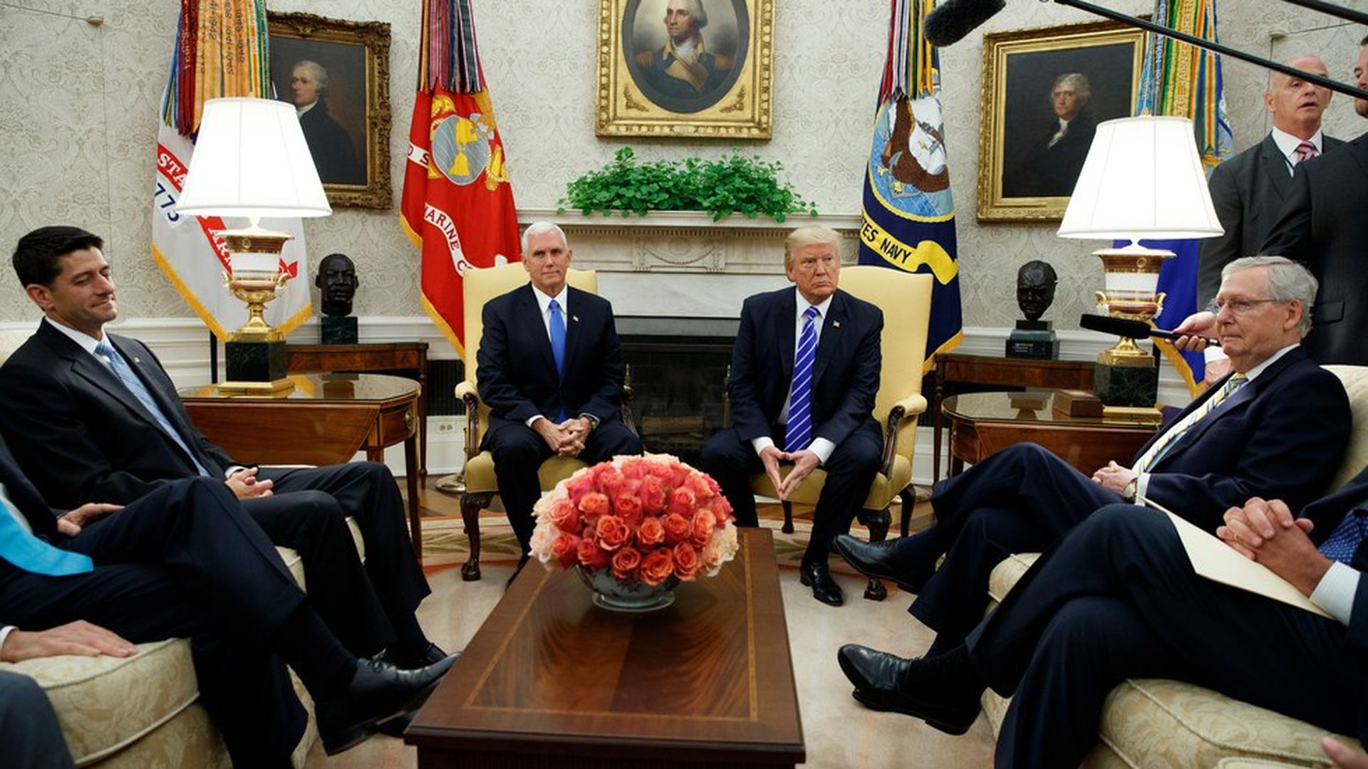 Trump Pence, McConnell and Ryan in the Oval Office. Photo: Evan Vucci / AP