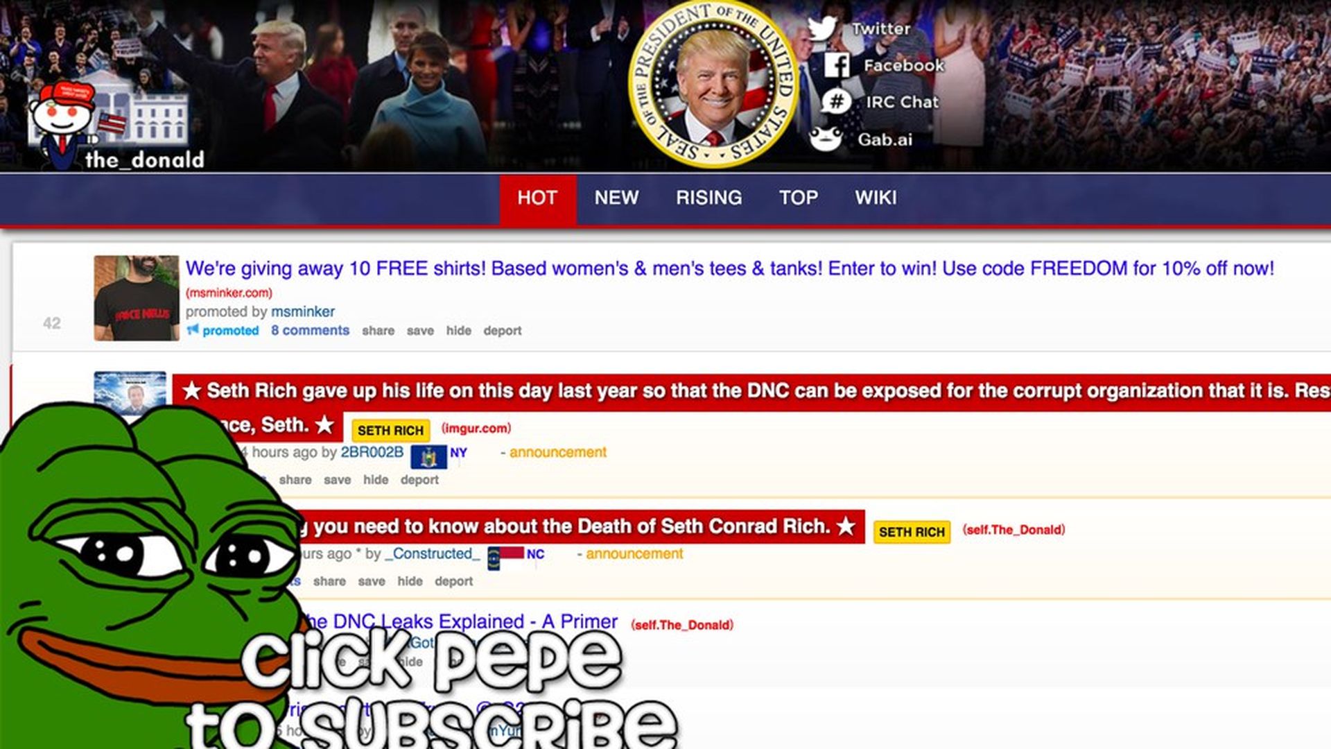 Liberals build social platforms with idealistic notions of change and inclusivity. Conservatives then master them to more effectively achieve their political ambitions.This under-appreciated dynamic is THE story of social media politics today. We saw this as Donald Trump and his allies harnessed – and at times manipulated - Twitter and Facebook, both built by liberal idealists, to win the presidency.We see a similar dynamic unfolding on Reddit, a company built by liberals that pro-Trump trolls are mastering to spread misinformation, often under the guise of First Amendment freedom.The power of "The_Donald": Trump himself tweeted a meme that bubbled up on a sub-reddit channel fittingly called "The_Donald." The channel has become the staging ground for the conservative movement on Reddit since the site banned two alt-right accounts earlier this year for violating their policies.Culture of trolling: Conservatives on Reddit are increasingly embracing "internet raiding," and trolling, where users ban together to game polls, algorithms or news feeds. Pepe the frog (more below) has become the symbol of the trolling movement.Money quote from BuzzFeed's Charlie Warzel in his newsletter: "A way I've been thinking of it is that Trump is like an assignment editor for the trolls."Pepe rising: The frog emoji symbolizes Pepe the Frog, a popular internet cartoon (see image above) that became a symbol of the alt-right conservative movement in early 2016.The alt-right social movement trolls highly-publicized national events and controversies using the frog emoji as a symbol of solidarity. "We've seen the Pepe frog emoji show up in basically every single national event since Trump was Inaugurated," Akash Nigam CEO of social analytics firm Blend, tells Axios. The frog was the most-used emoji during Trump's inauguration and the Super Bowl.