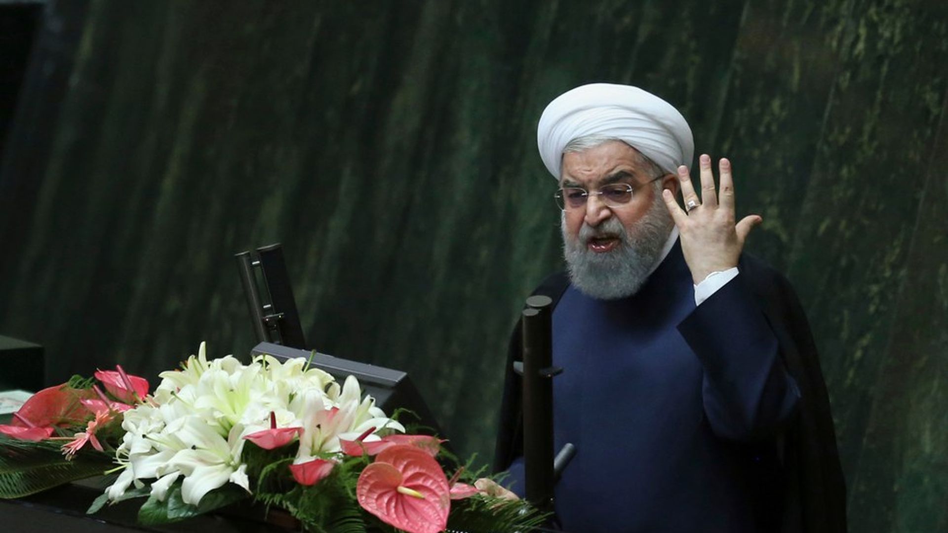 Rouhani speaks at a session of parliament before a vote of confidence for his cabinet, in Tehran, Iran this August. Photo: Vahid Salemi / AP