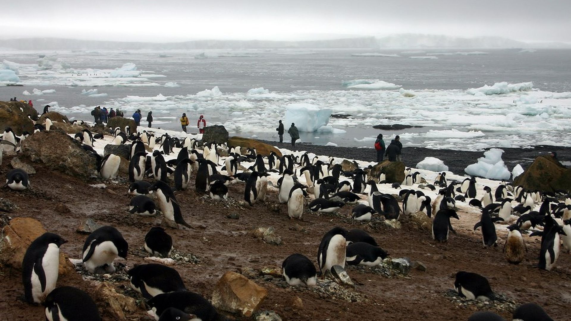 Scores of Adelie penguins at Brown Bluff on the northern tip of the Antarctic Peninsula. Photo: Brian Witte / AP