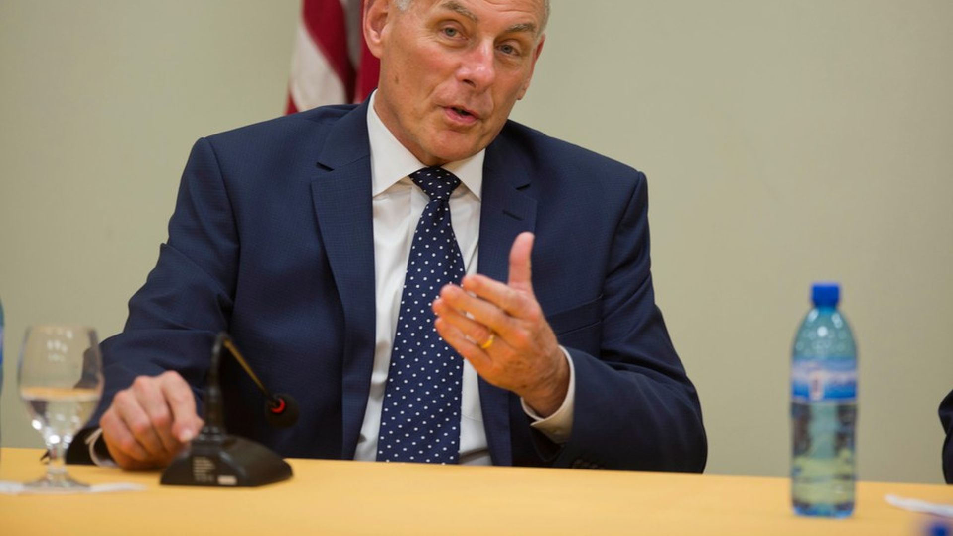 Kelly led the press briefing Thursday. Photo: Dieu Nalio Chery / AP