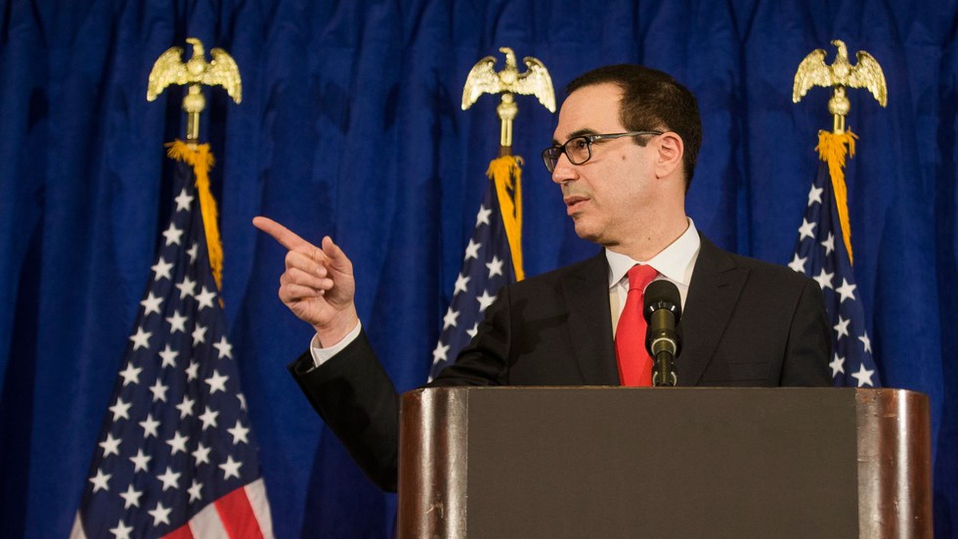 Steven Mnuchin takes a question at a press briefing at the Hilton Midtown hotel during the United Nations General Assembly. Photo: Andres Kudacki / AP
