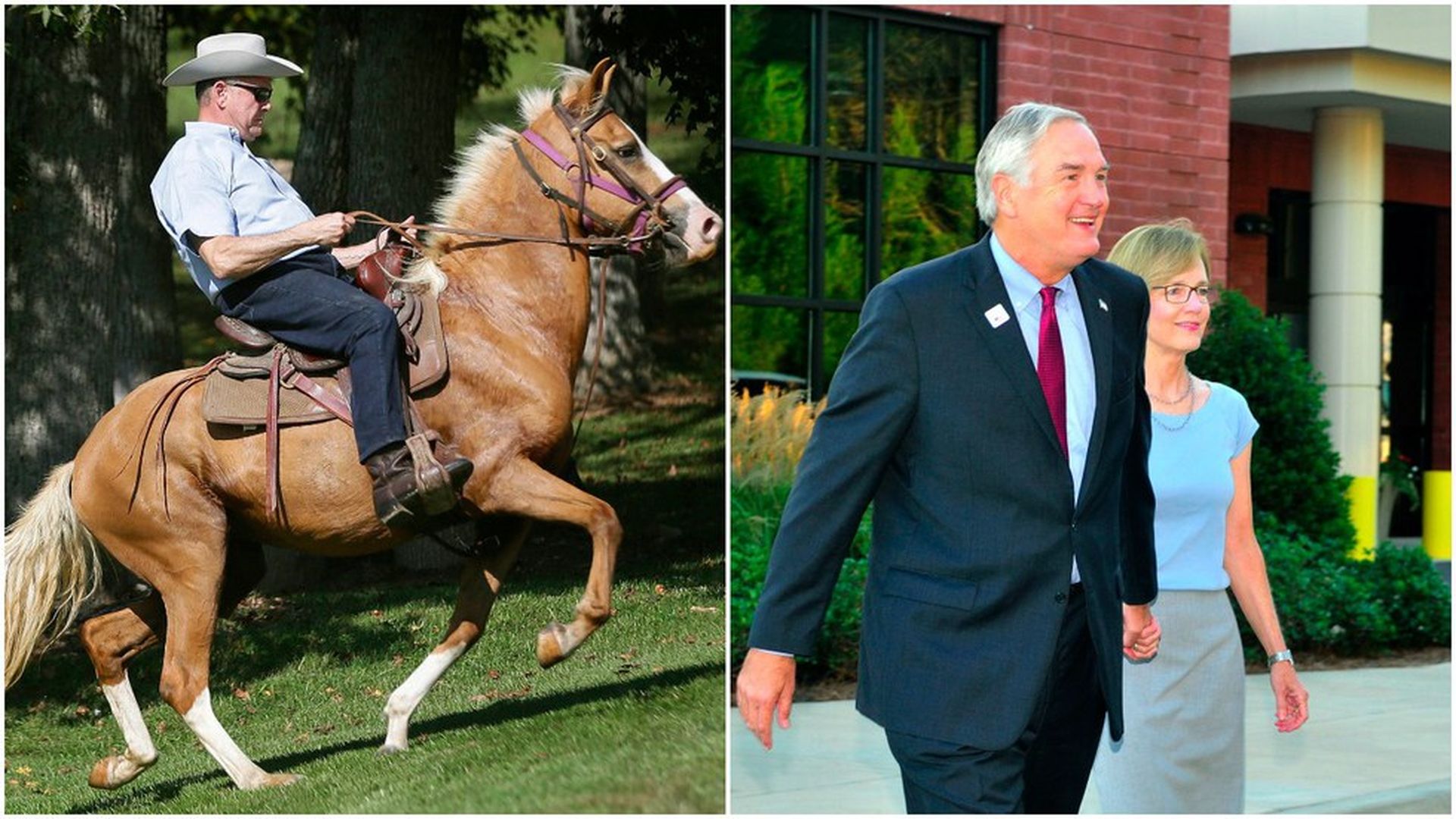 Roy Moore (L) and Luther Strange (R) arrive to vote. Photos via AP