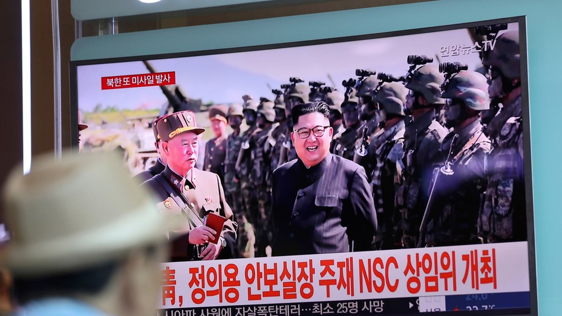 Kim Jong-Un appears on TV in a Seoul train station. Photo: Lee Jin-man / AP