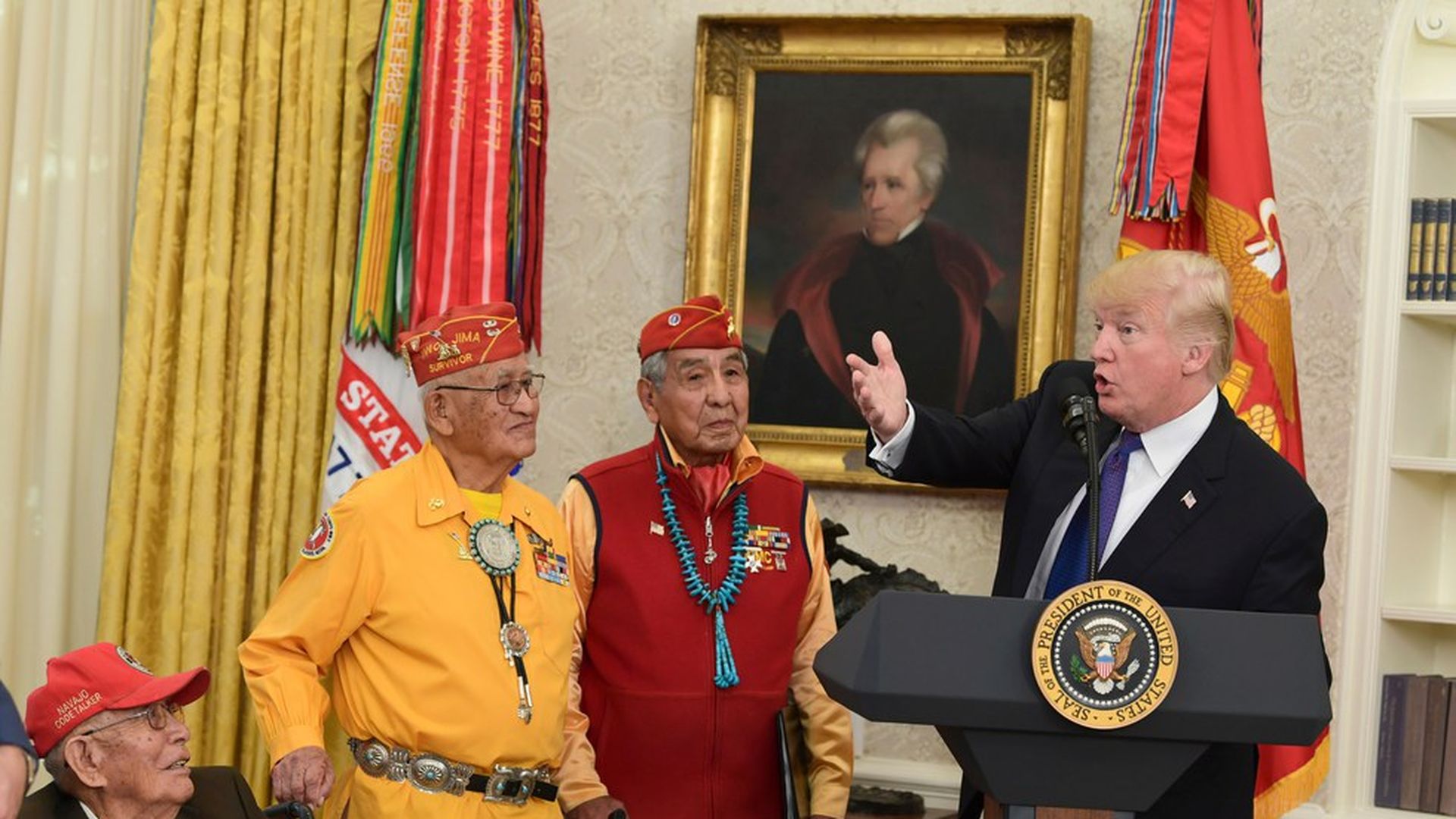 Trump at Monday's event honoring Native American war heroes. Photo: Susan Walsh / AP