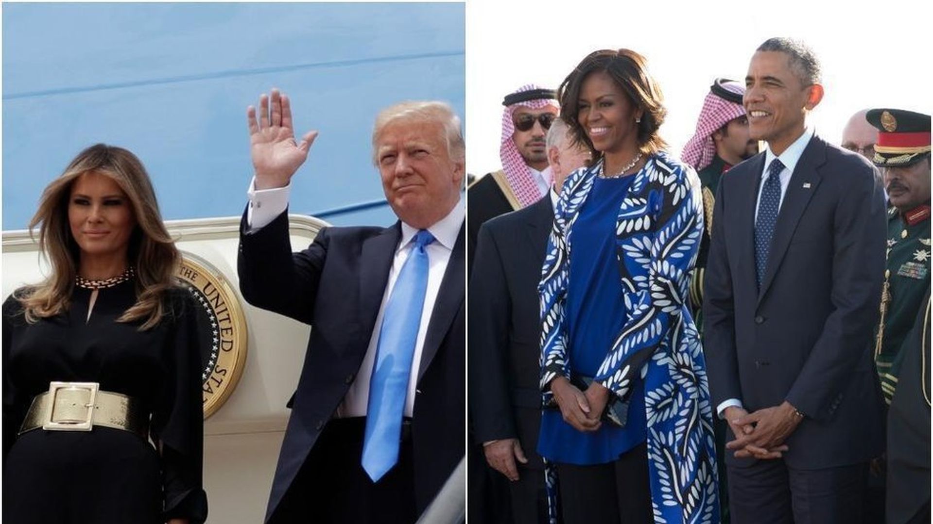 Today, Melania was noticeably not wearing a headscarf during his visit to Saudi Arabia with Trump, but there's no backlash from the president this time around. Perhaps because he realized that most Western women (including past First Ladies Obama and Hillary Clinton) have gone without the scarf, as head coverings aren't required for foreign visitors, AP points out.