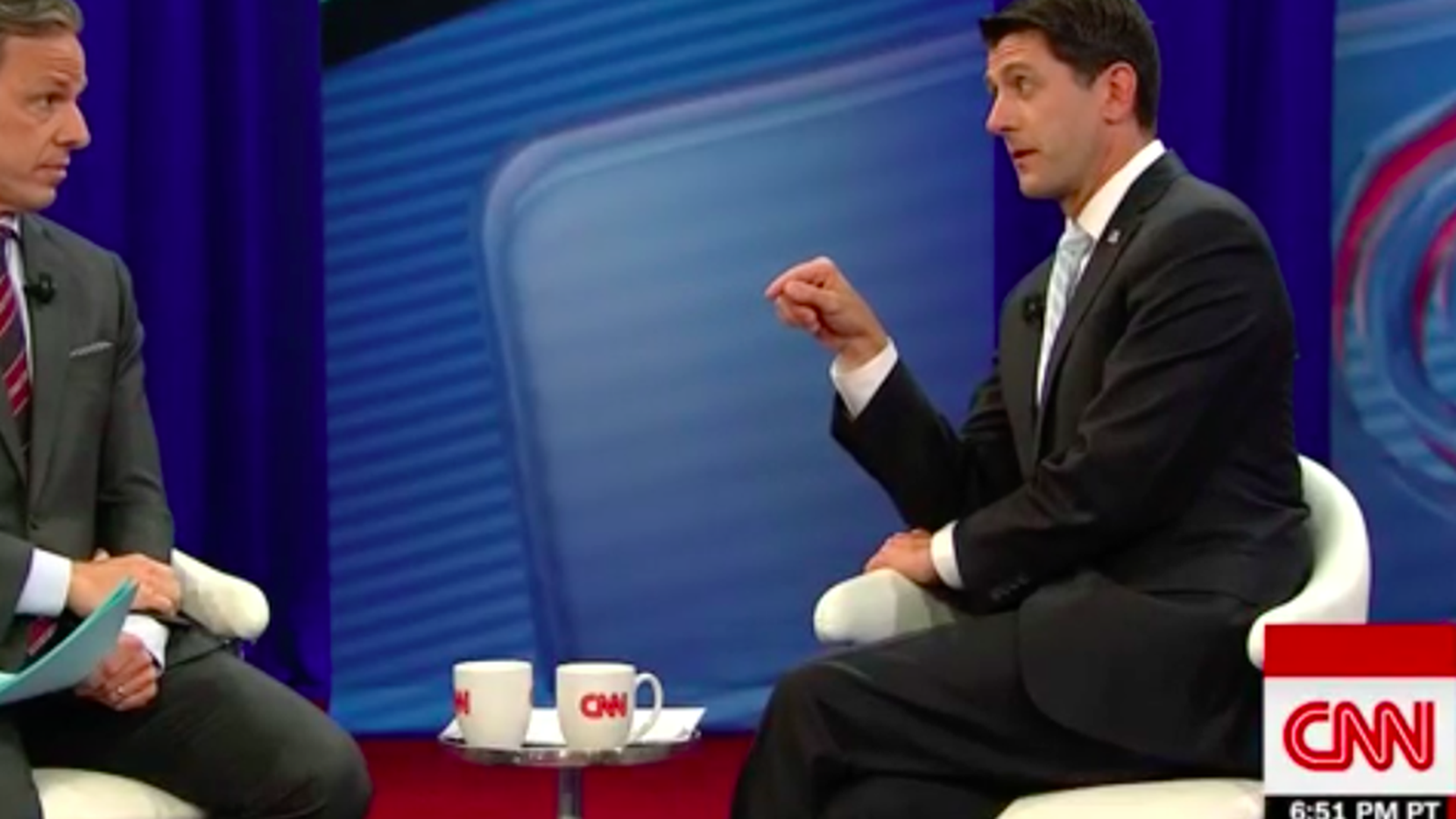 On Charlottesville: "He messed up on Tuesday." Ryan was hesitant to condemn Trump's response as anything more than "morally ambiguous" until pressed by Jake Tapper.