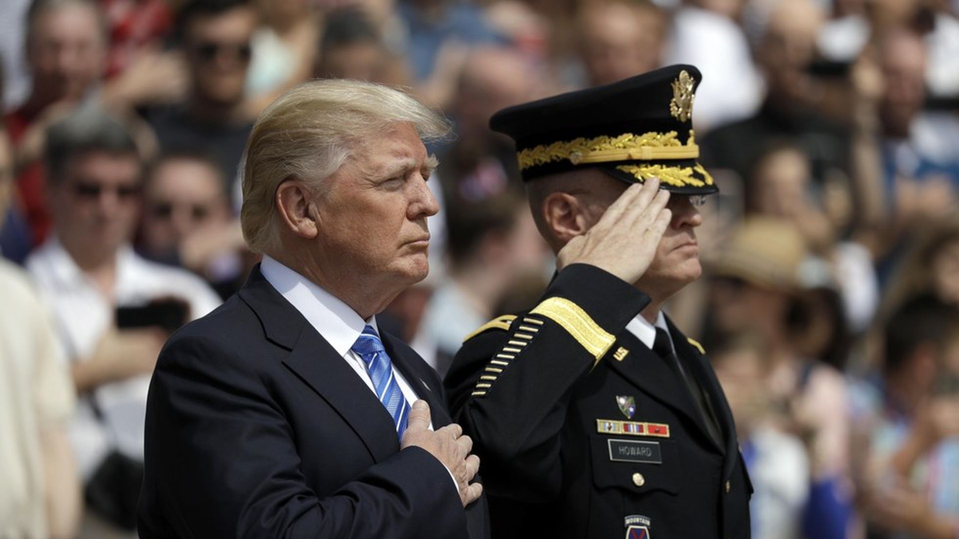 From the White House pool report, where President Trump is visiting Arlington National Cemetery to pay his Memorial Day respects at the Tomb of the Unknown Soldier.