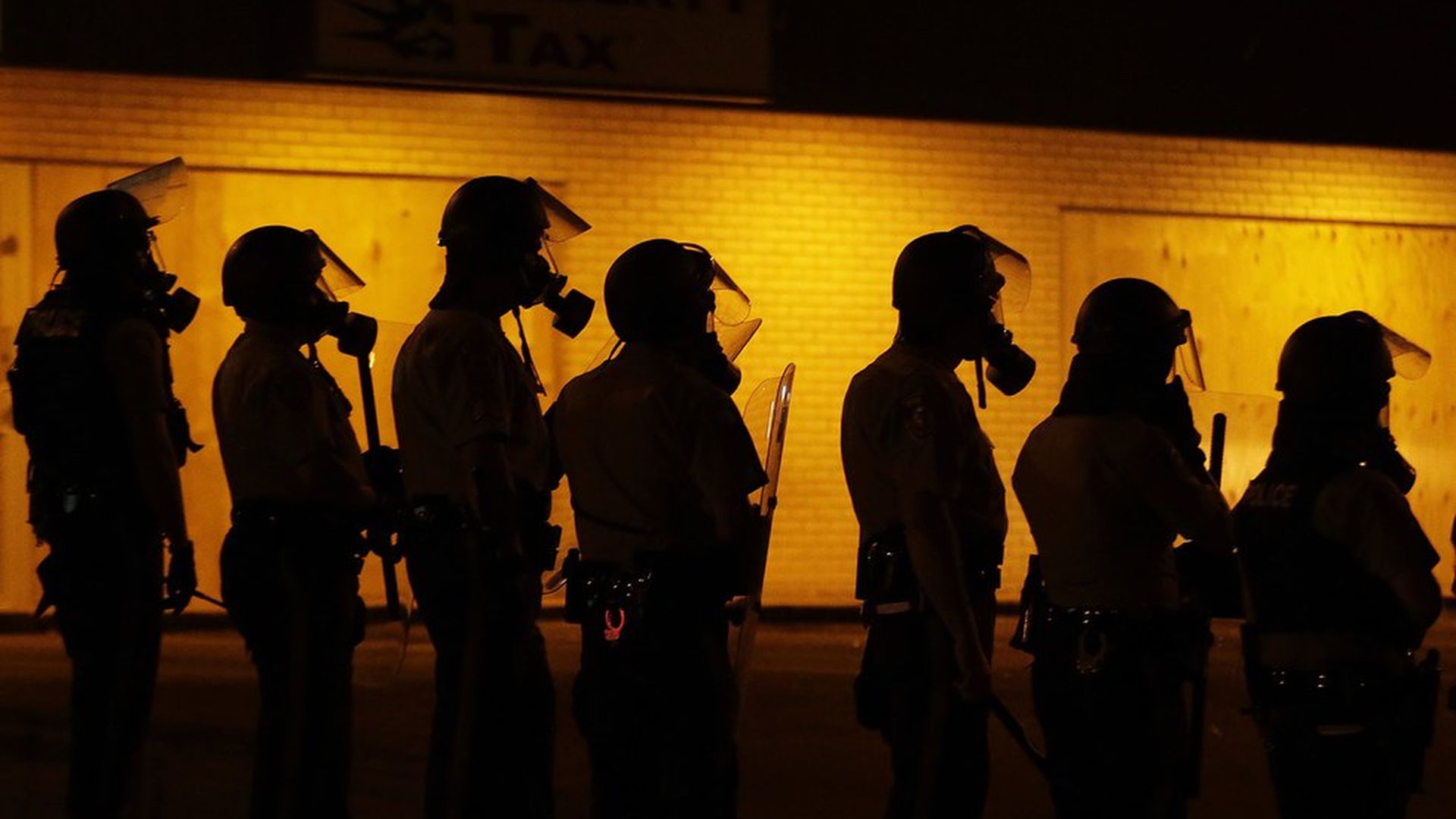 Police wait after tear gas was used on a crowd during a protest for Michael Brown in Ferguson, Missouri, August 17, 2014. Brown was fatally shot that year by a white officer, Darren Wilson. Charlie Riedel / AP