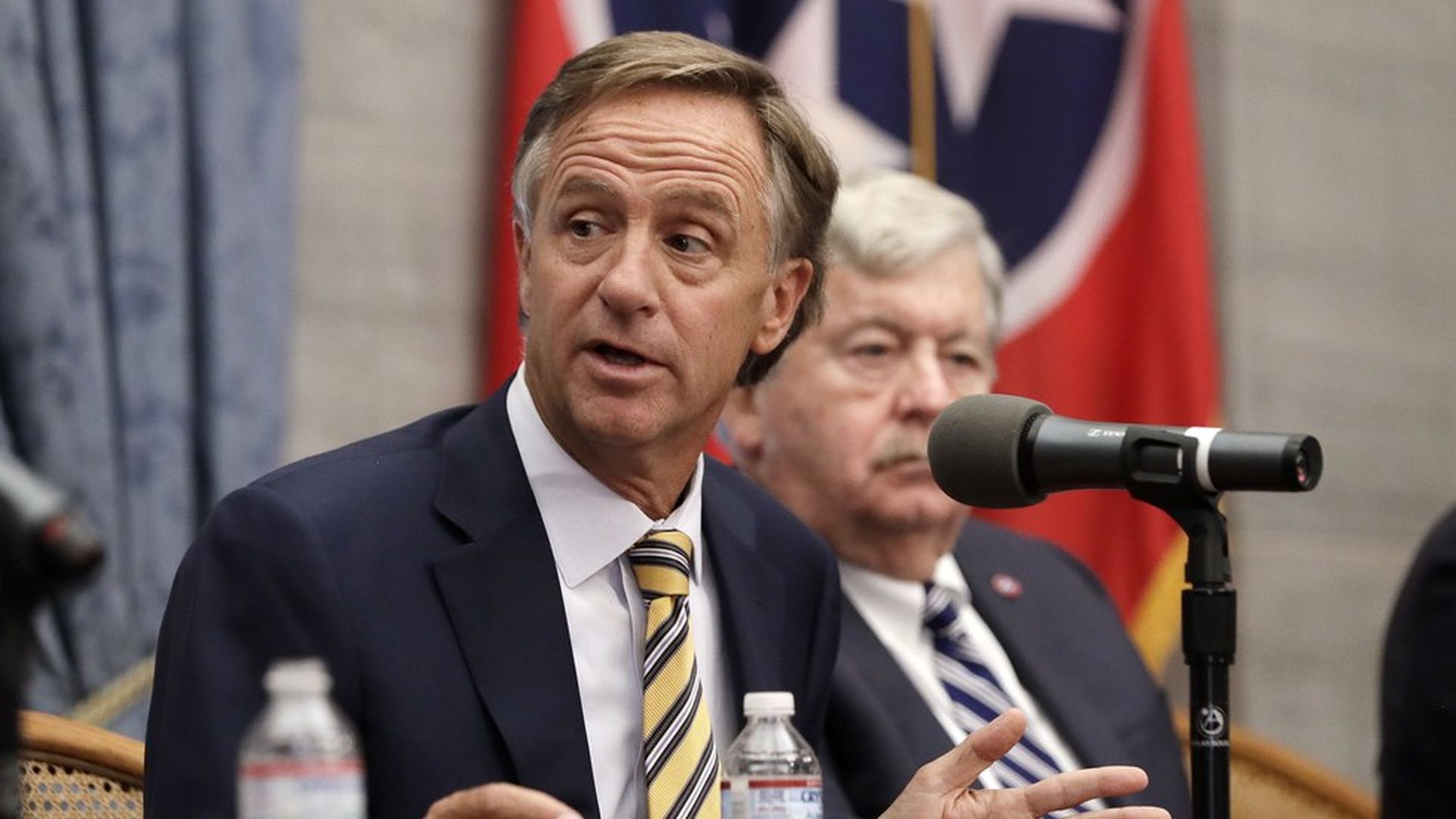 Tennessee Gov. Bill Haslam speaks during a news conference on the final day of the legislative session Wednesday, May 10, 2017, in Nashville, Tenn. (AP Photo/Mark Humphrey)