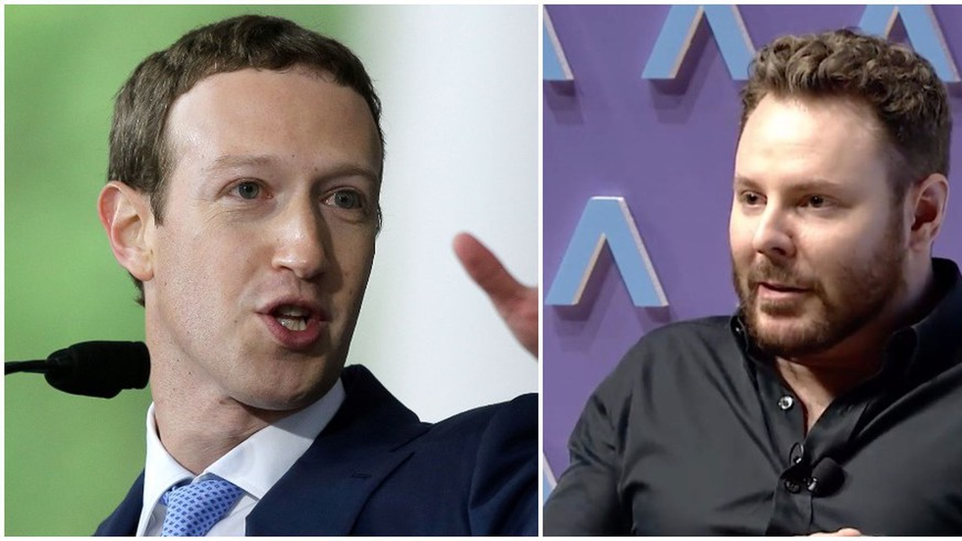 Mark Zuckerberg (L) and Sean Parker (R). Photos: Steven Senne/AP, Axios video