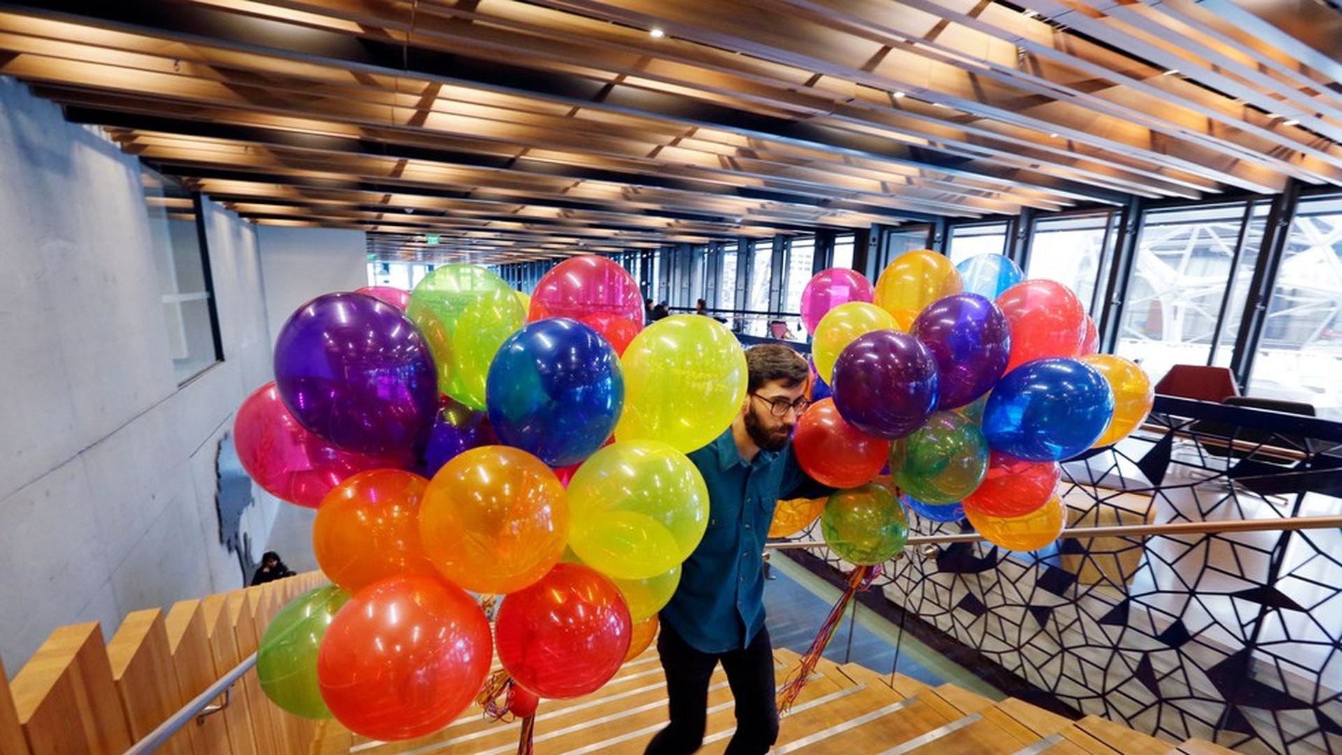 Balloons for a company event at Amazon's headquarters in Seattle, Washington. Photo: Elaine Thompson / AP