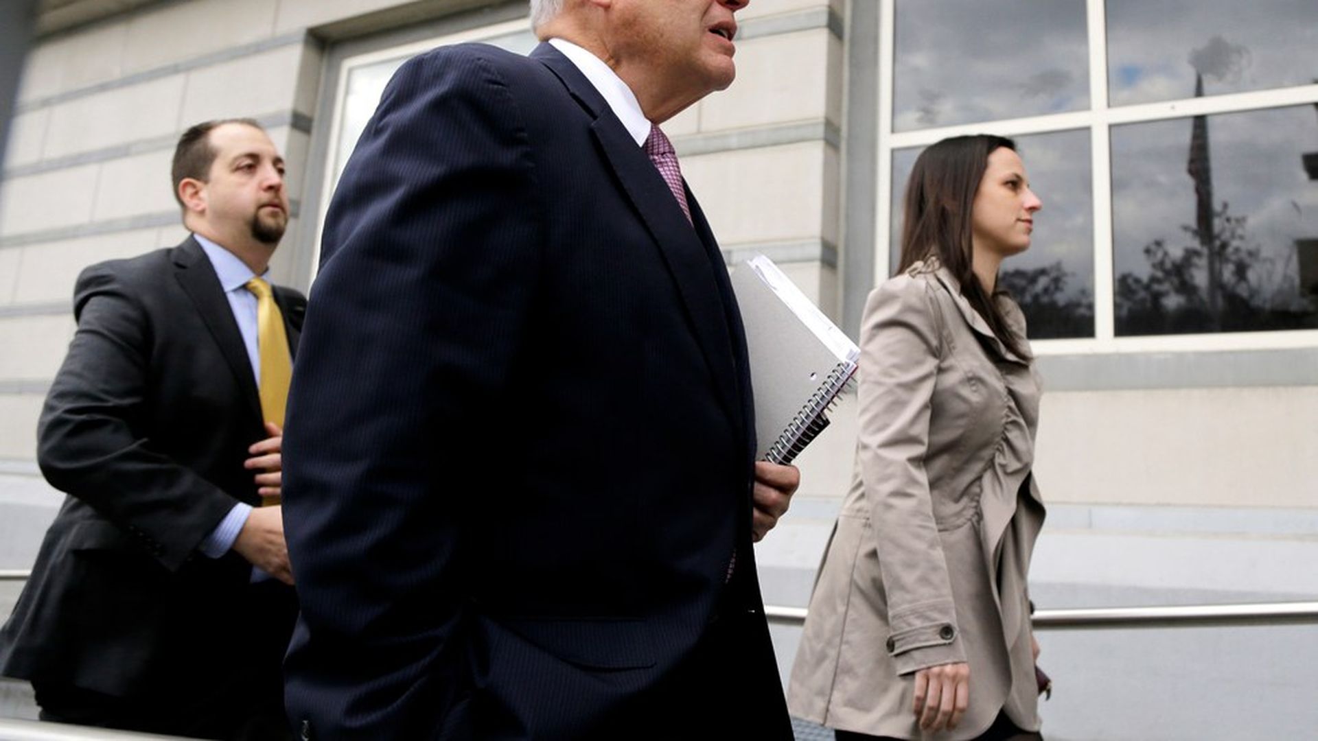 Menendez arrives at a courthouse in Newark. Photo: Julio Cortez / AP