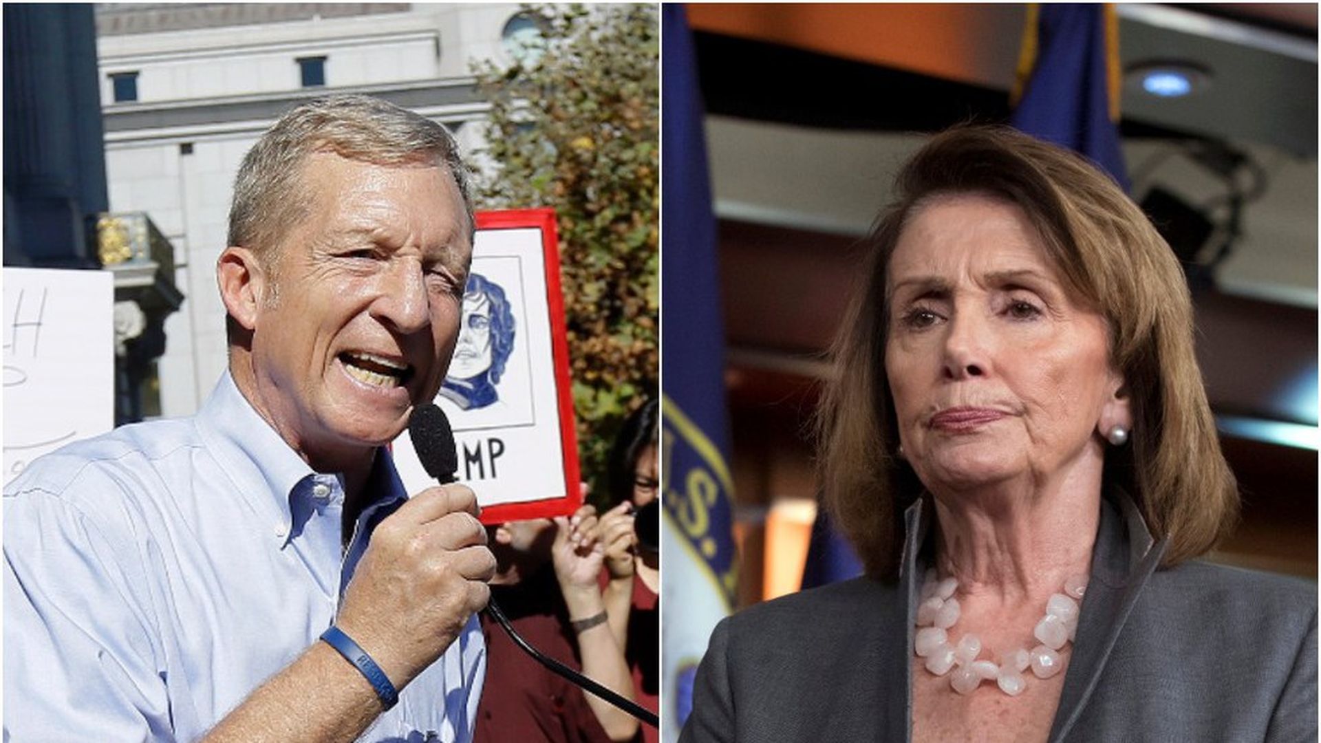 Tom Steyer responds to Nancy Pelosi's comments about his impeachment petition. Photos: AP