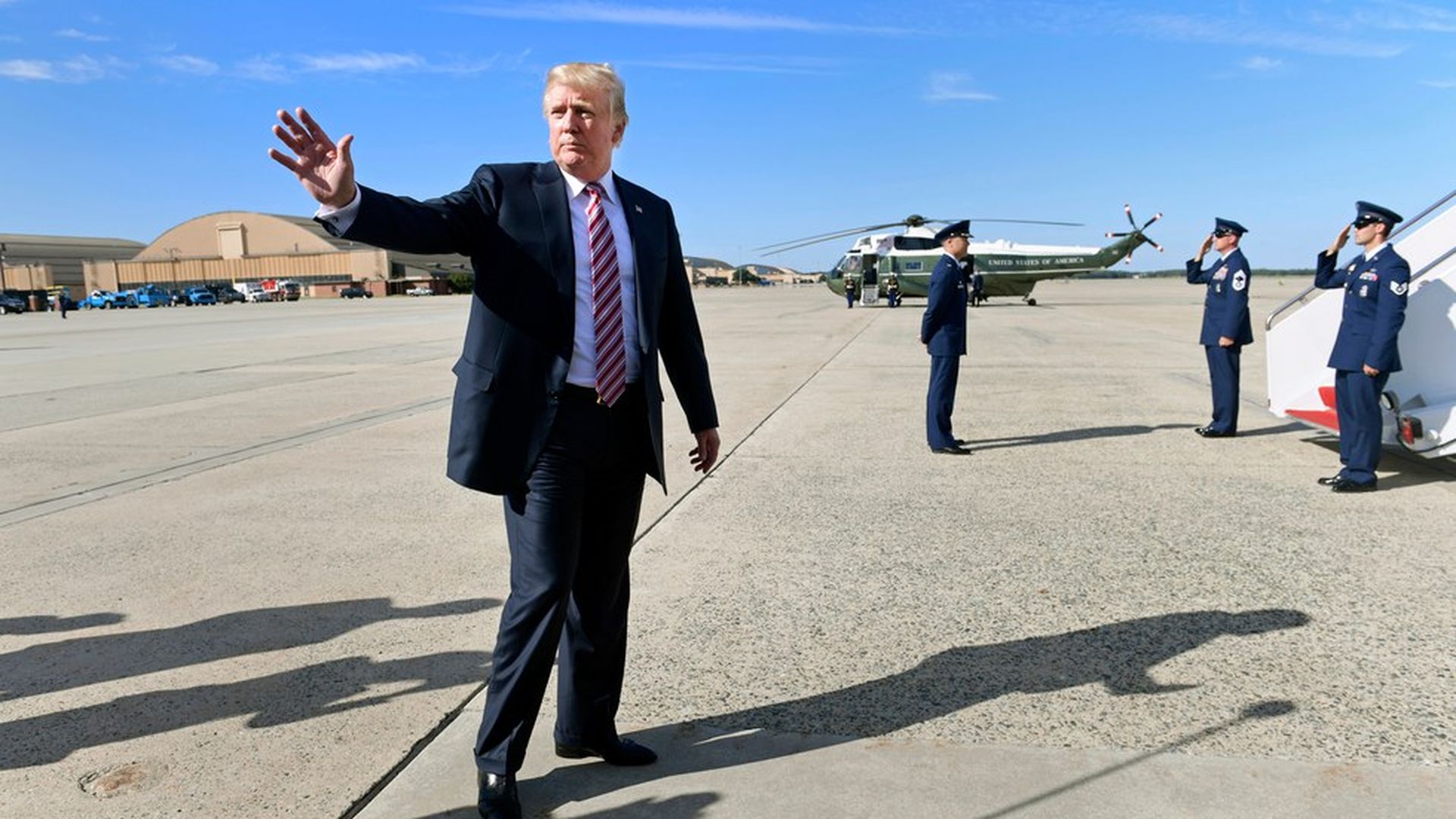 President Trump prepares to board Air Force One, heading to New Jersey for the weekend. Photo: Susan Walsh / AP