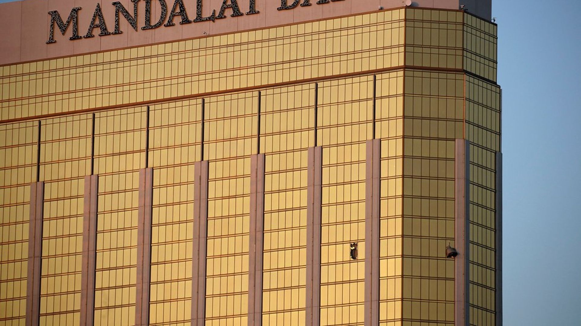 Broken windows at the Mandalay Bay Resort and Casino. Photo: John Locher / AP
