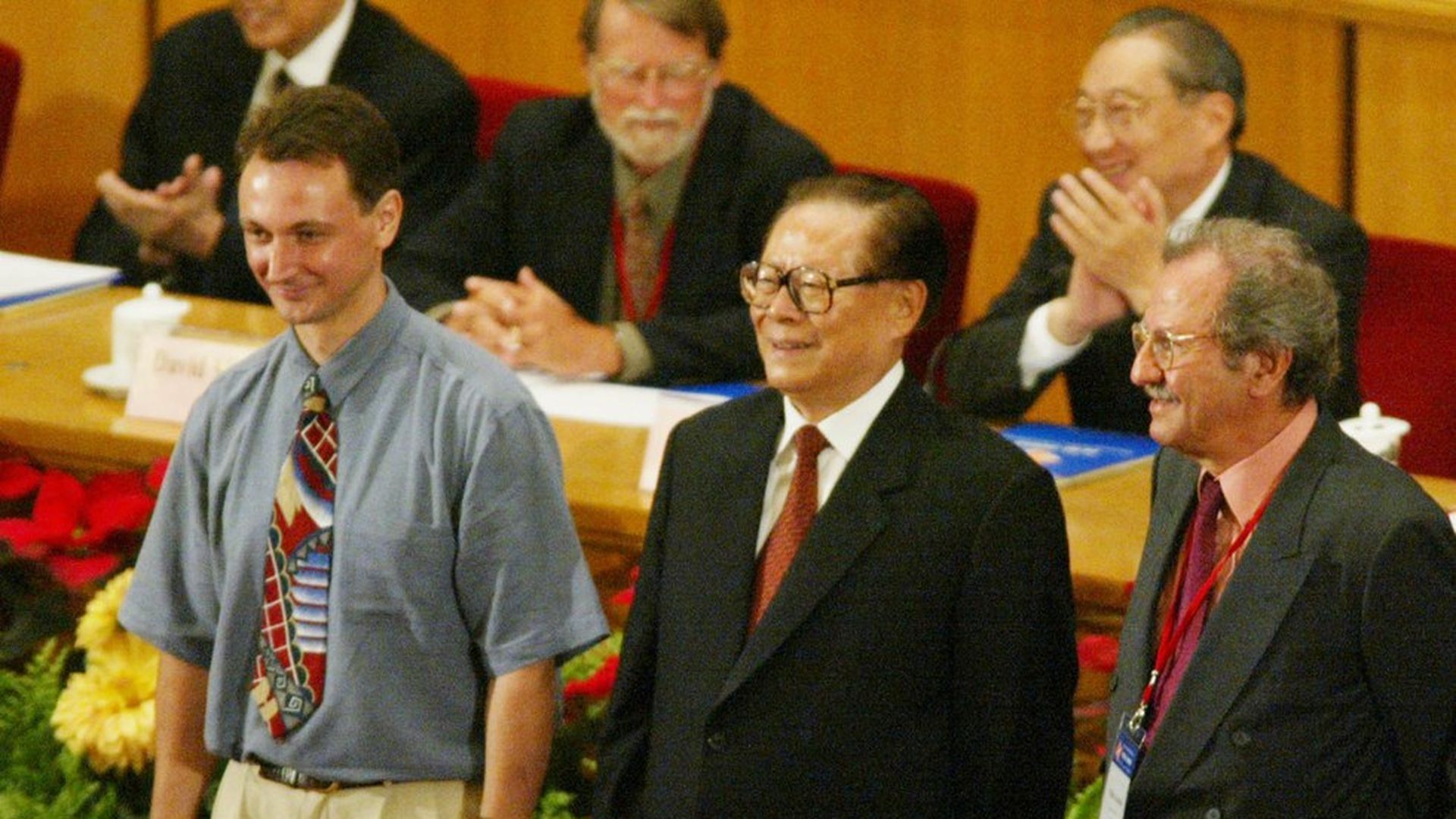 Voevodsky (left) is awarded the Fields Medal — mathematics' highest prize — in 2002. Photo: Greg Baker / AP