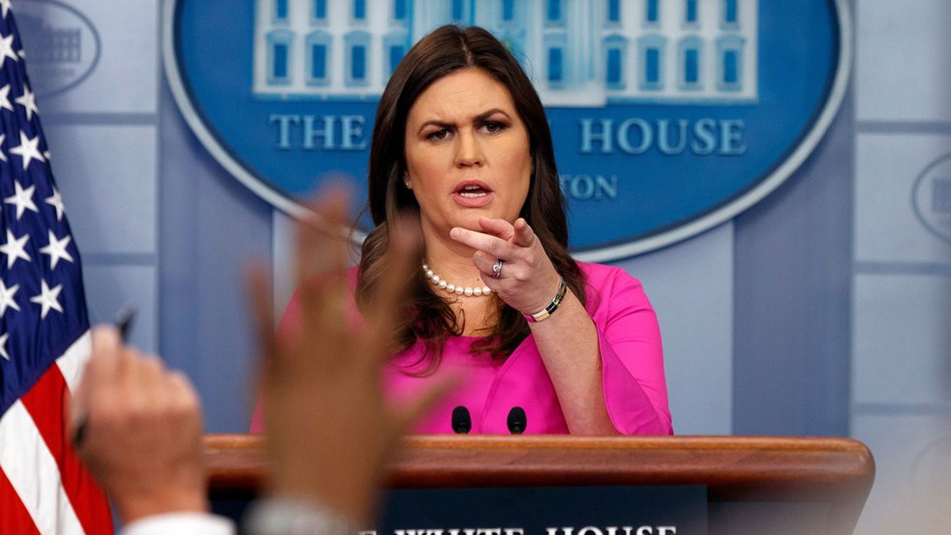 Sanders takes questions during a press briefing at the White House. Photo; Evan Vucci / AP