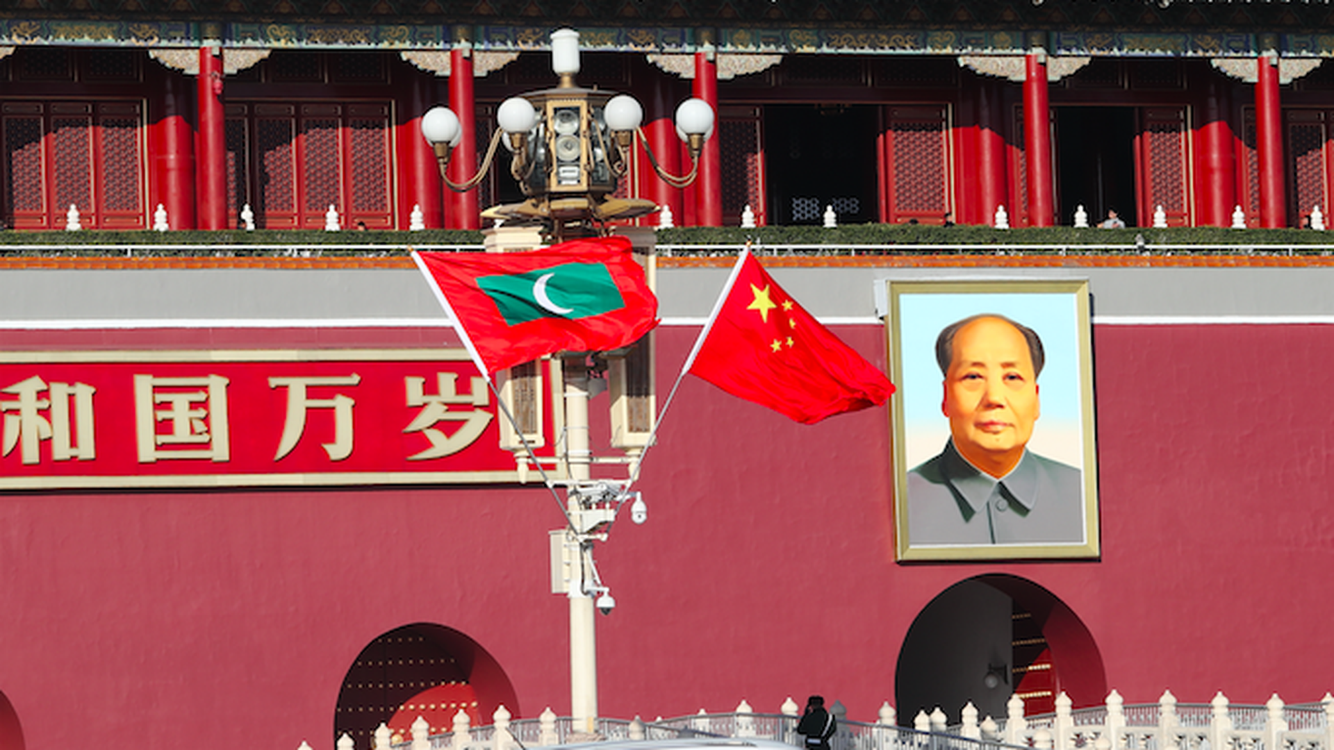 National flags of China and Maldives fly on Tiananmen Square. Photo: VCG / VCG via Getty Images)