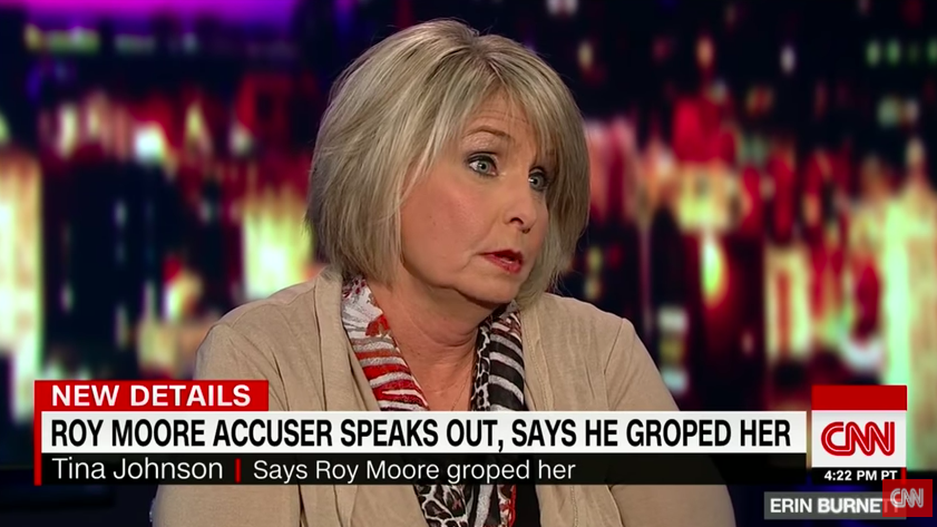 Screen-grab of Tina Johnson, who accused Roy Moore of groping her, on CNN's OutFront with Erin Burnett.
