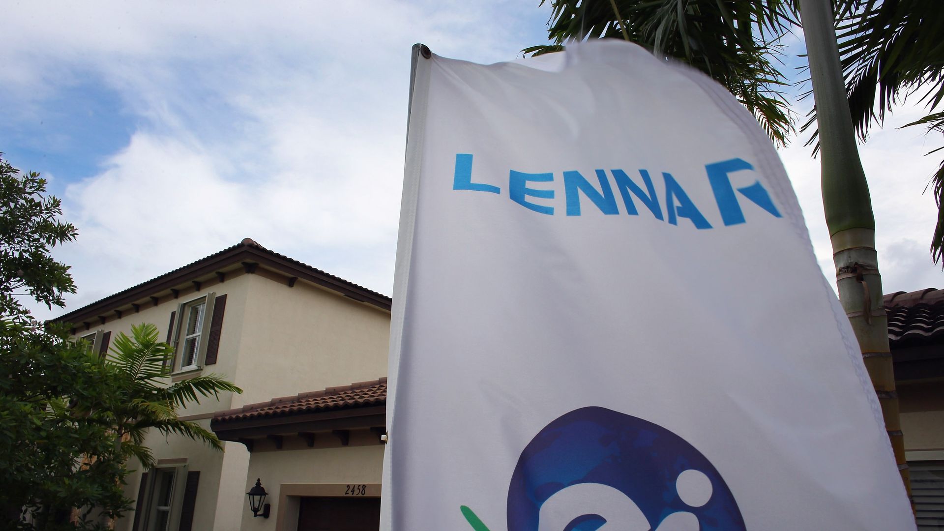 A Lennar Corp sign is displayed in front of a house. Photo: Joe Raedle/Getty Images