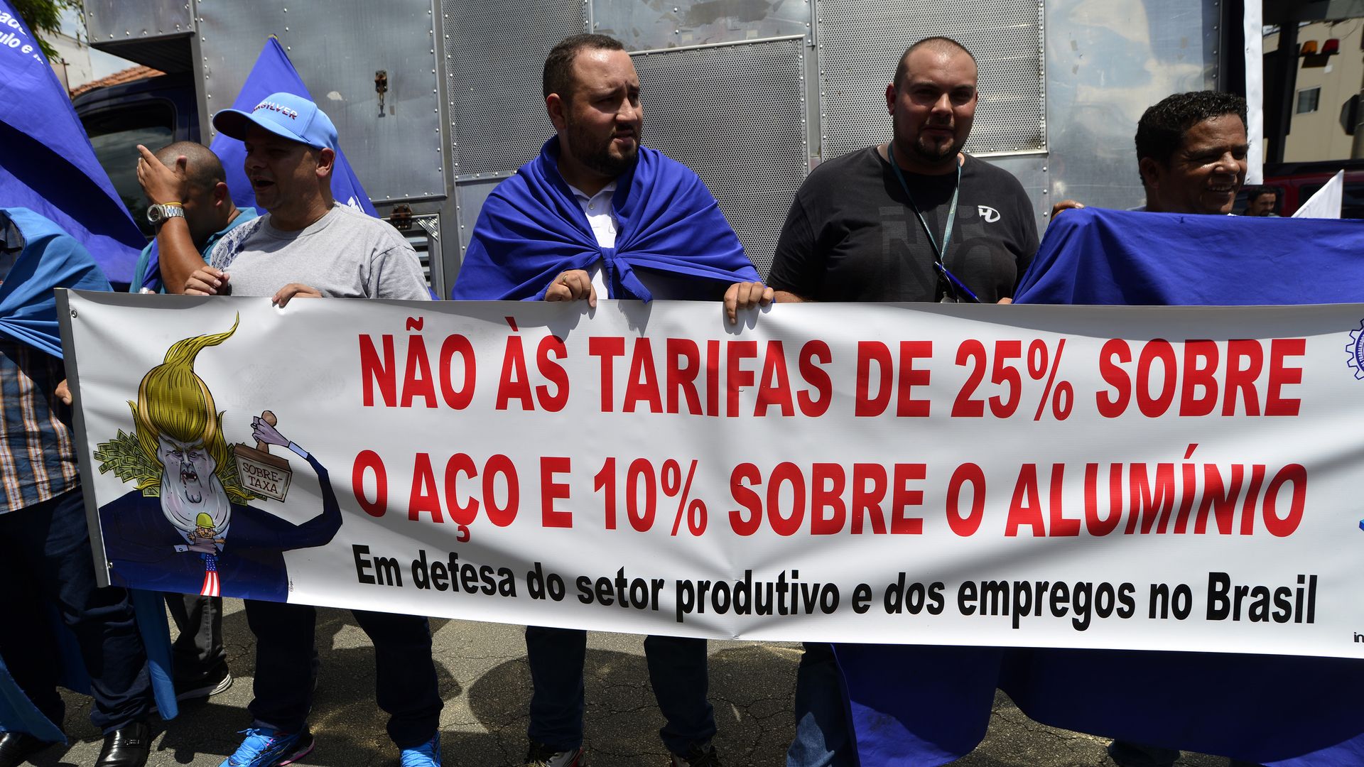 Trade union members protest President Trump's steel tariffs in Sao Paulo, Brazil. Photo: Cris Faga / NurPhoto via Getty Images