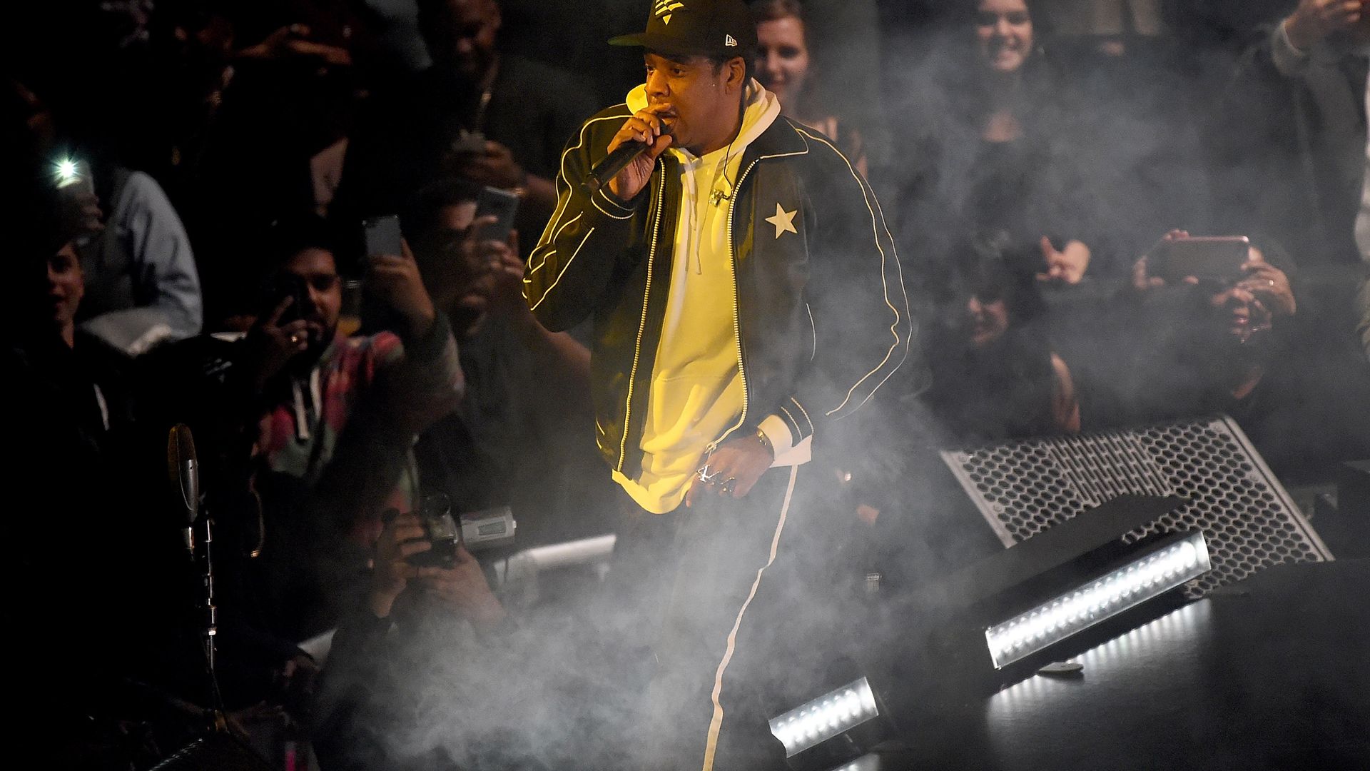 Jay-Z in concert. Photo by Kevin Mazur/Getty Images.