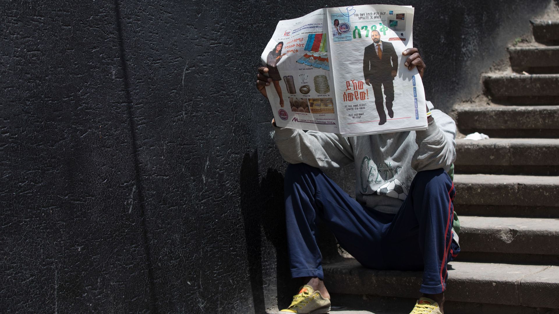 A man reads a newspaper showing the news that Ahmed will become prime minister. Photo: ZACHARIAS ABUBEKER/AFP/Getty Images