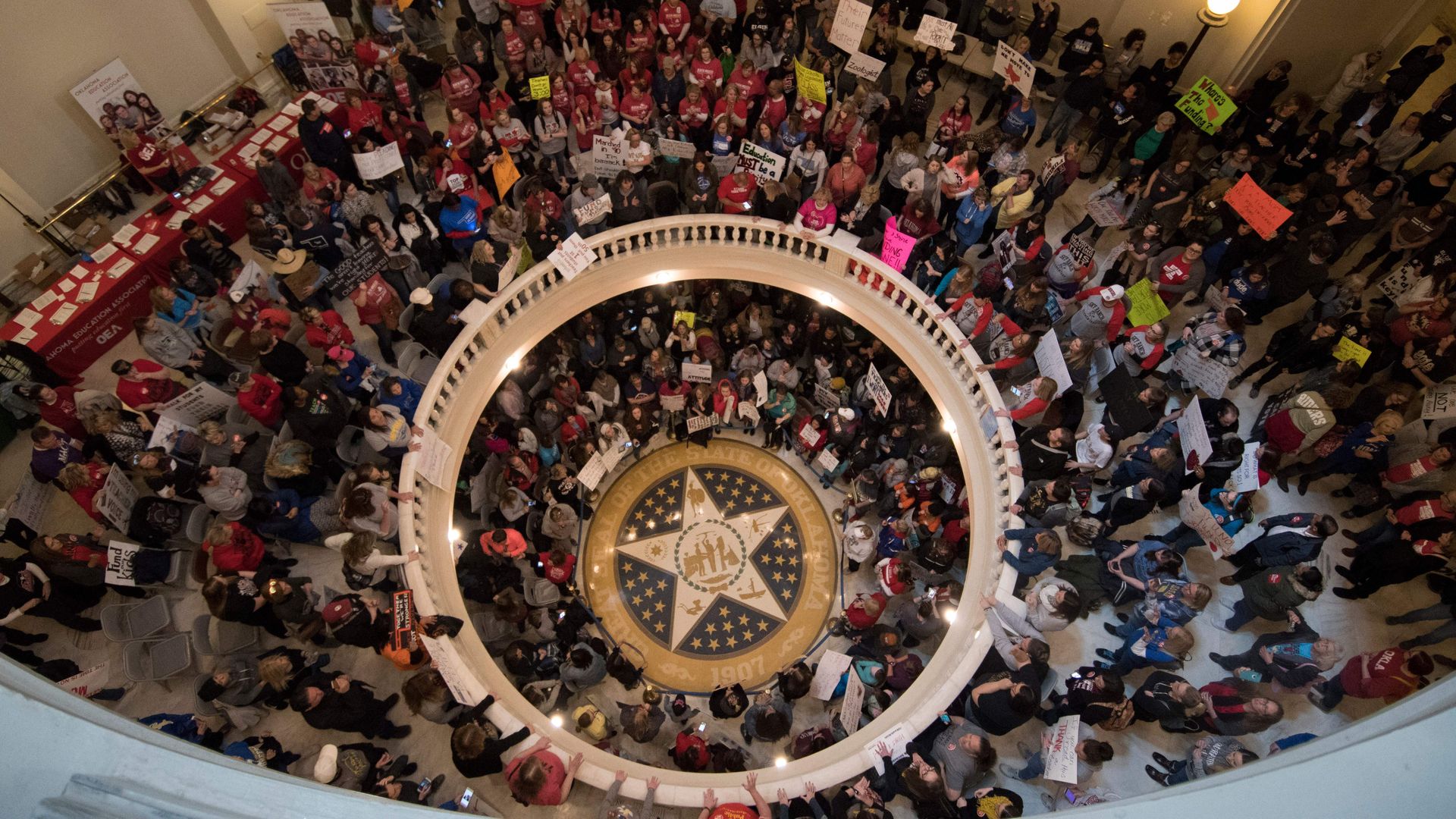 Oklahoma teachers rally at the state capitol in Oklahoma City, demanding increase funding for public schools after years of budget cuts. Photo: J PAT CARTER / AFP / Getty Images