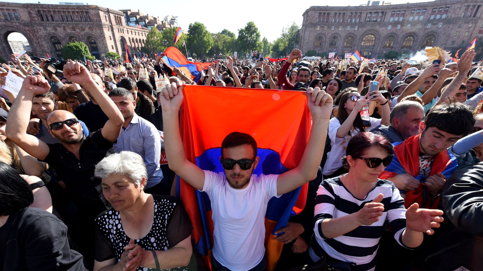 Protesters Wednesday in Yerevan. Photo: Van Shlamov/AFP/Getty Images