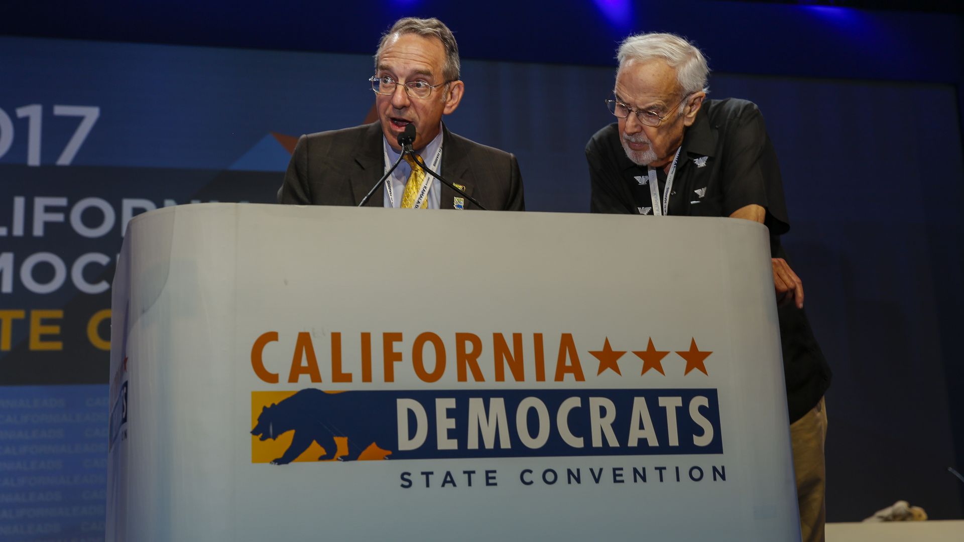 California Democratic Party special counsel, Coby King, left, with former party Chairman John Burton. Photo: Jay L. Clendenin/Los Angeles Times via Getty Images