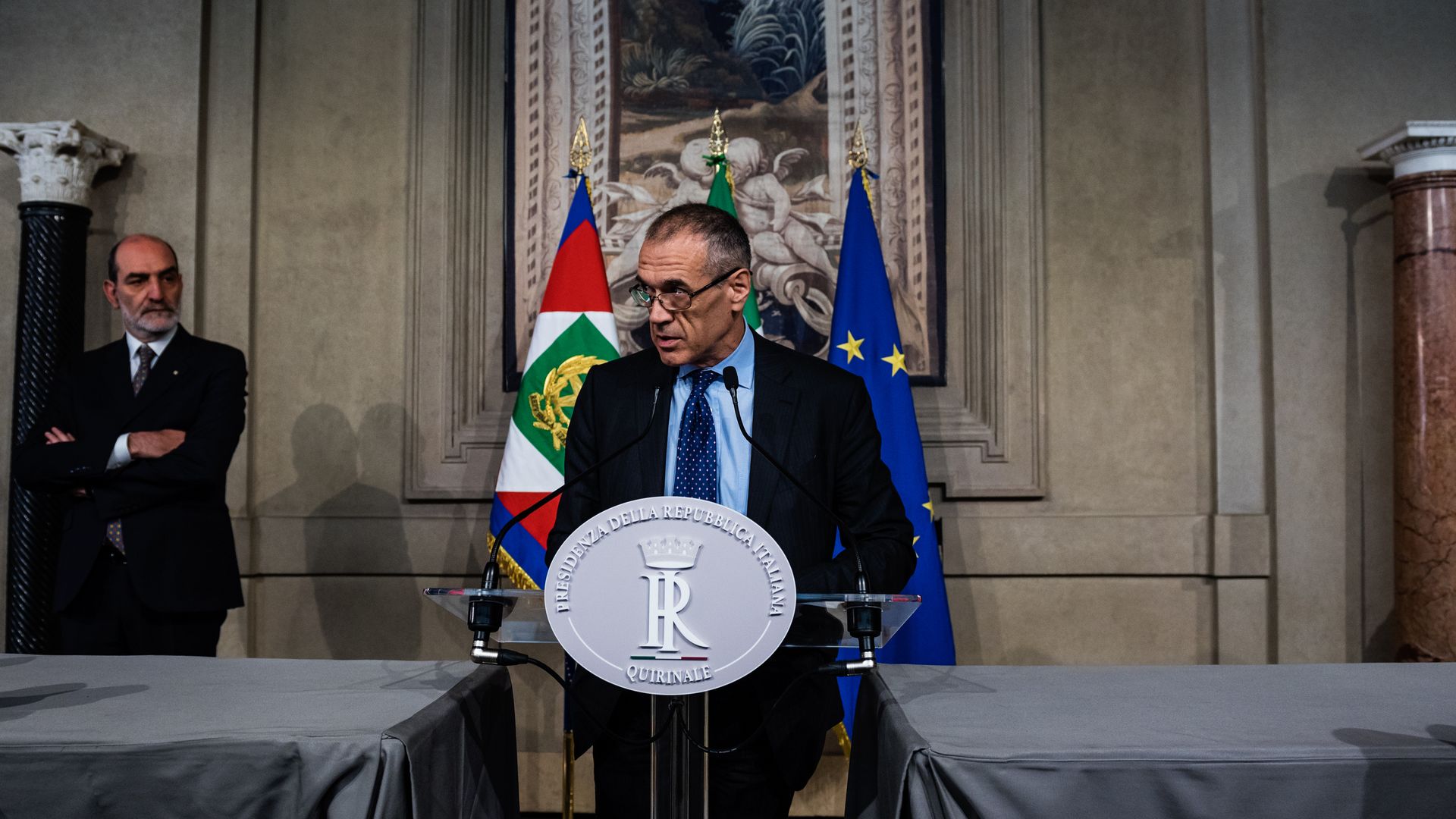Cottarelli speaks after meeting with Mattarella. Photo: Michele Spatari/NurPhoto via Getty Images