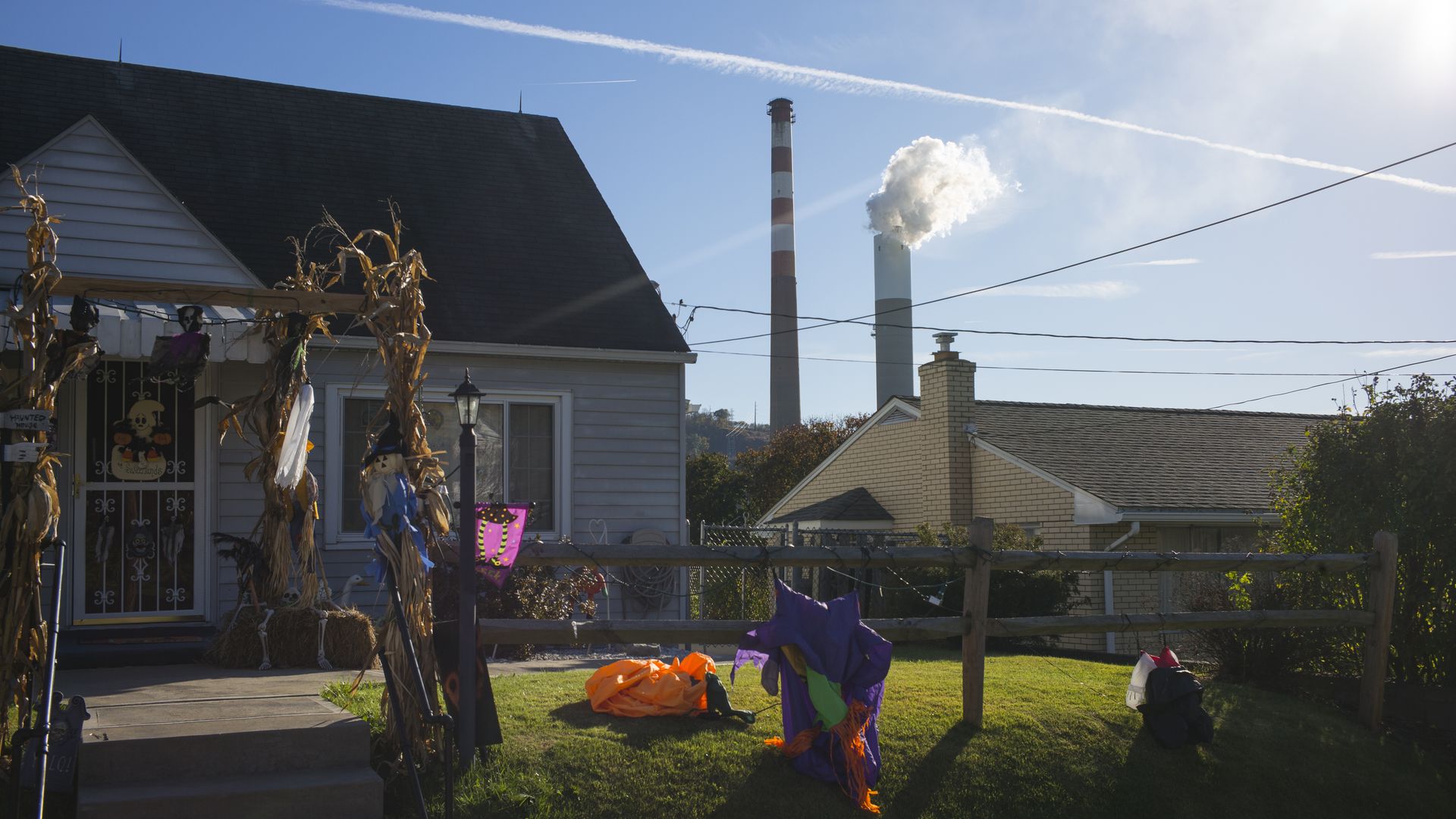 A view from a residential area of the smoke stack of the Cheswick coal-fired power plant in Springdale, Pennsylvania. Photo: Robert Nickelsberg/Getty Images