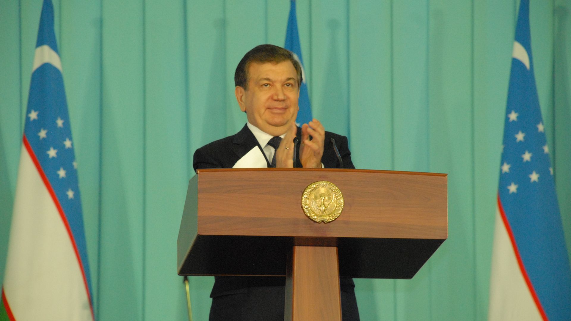 Shavkat Mirziyoyev addresses supporters after assuming the presidency. Photo: Bahtiyar Abdukerimov/Anadolu Agency/Getty Images.