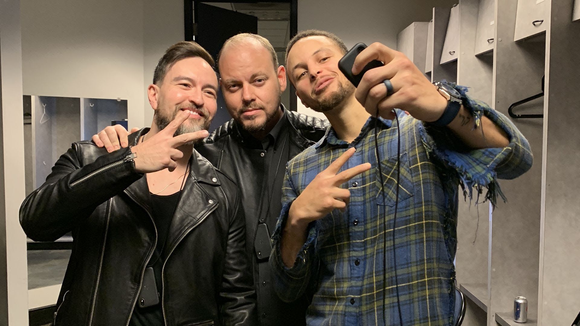 Stephen Curry poses with co-founders of the latest incarnation of Palm. Photo: Ina Fried/Axios