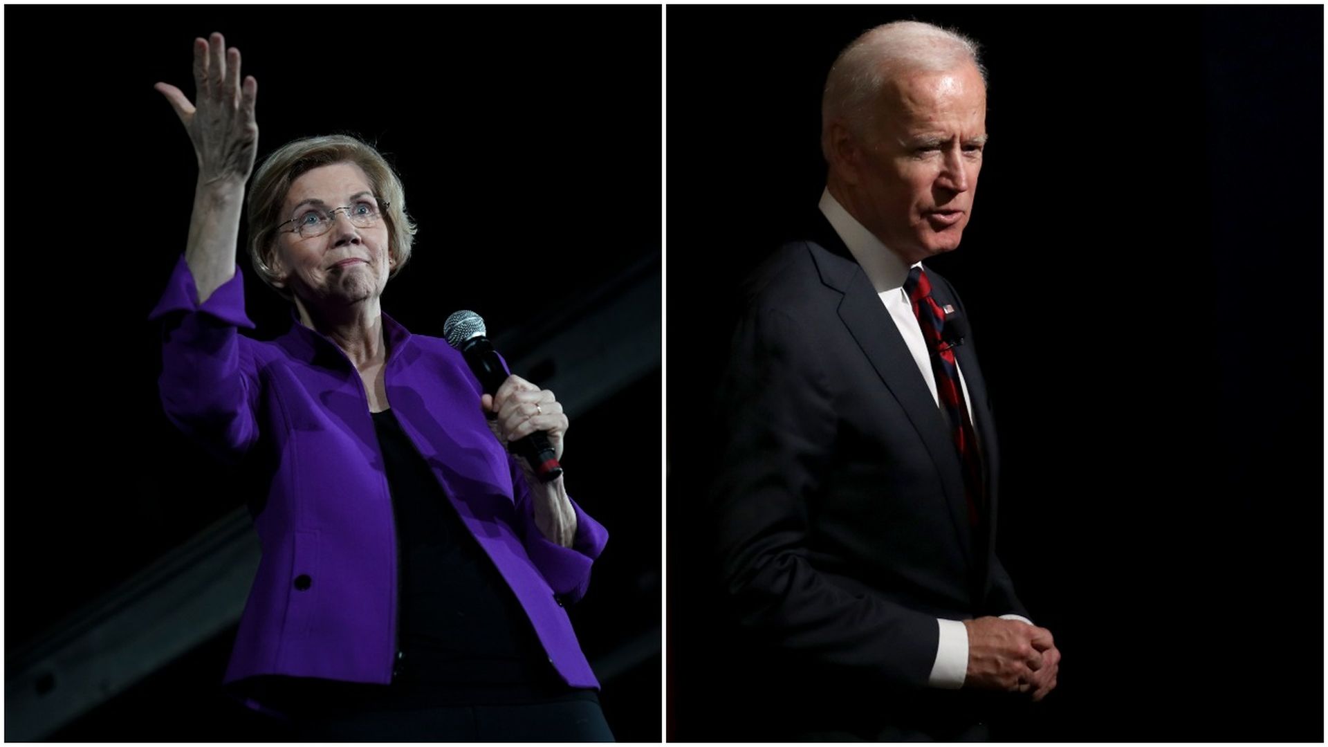 Sen. Elizabeth Warren. Photo: Drew Angerer/Getty Images; Joe Biden. Photo: Win McNamee/Getty Images