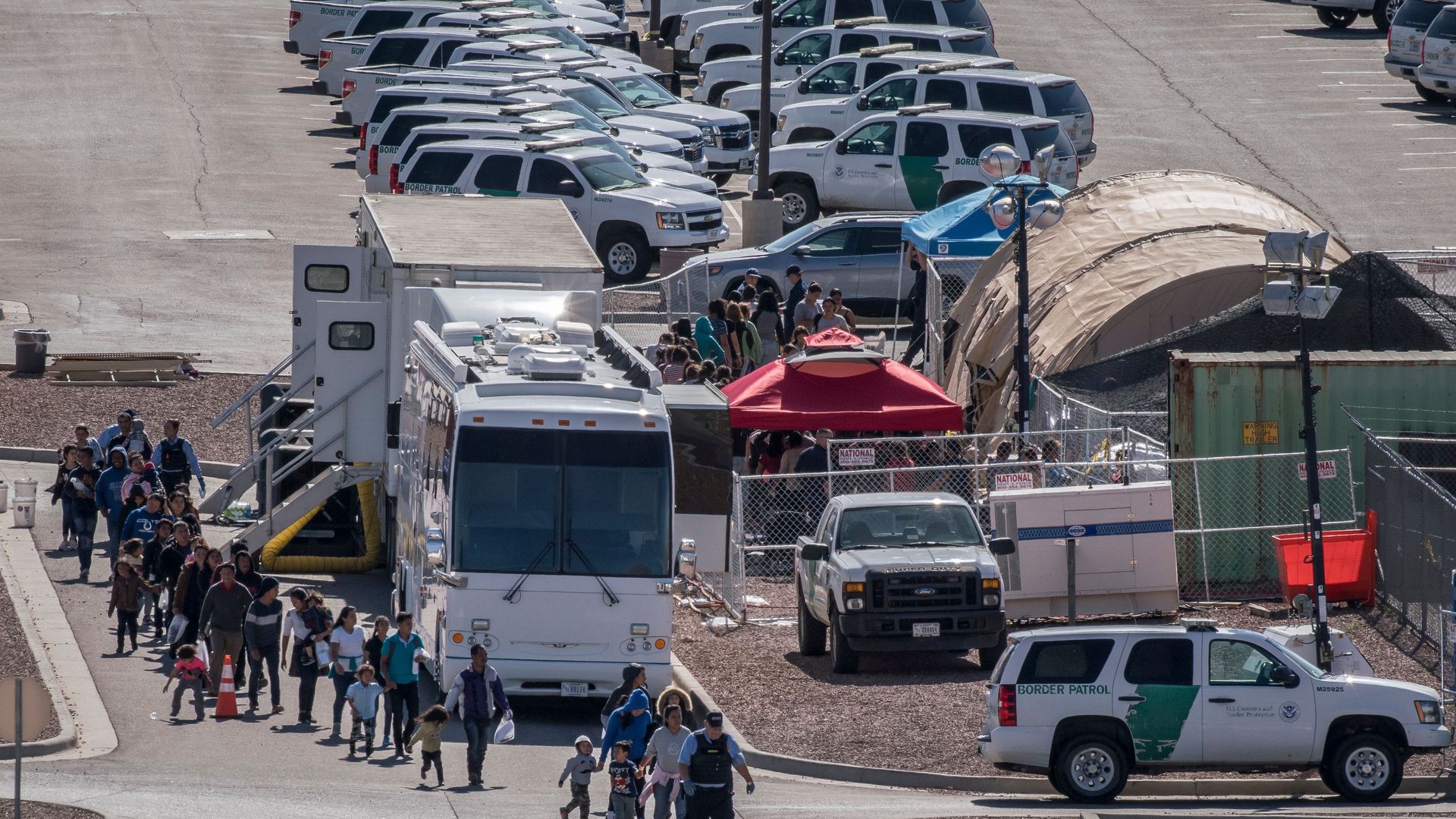Migrants board buses to take them to shelters, El Paso, April 28. Photo: Paul Ratje/AFP/Getty Images